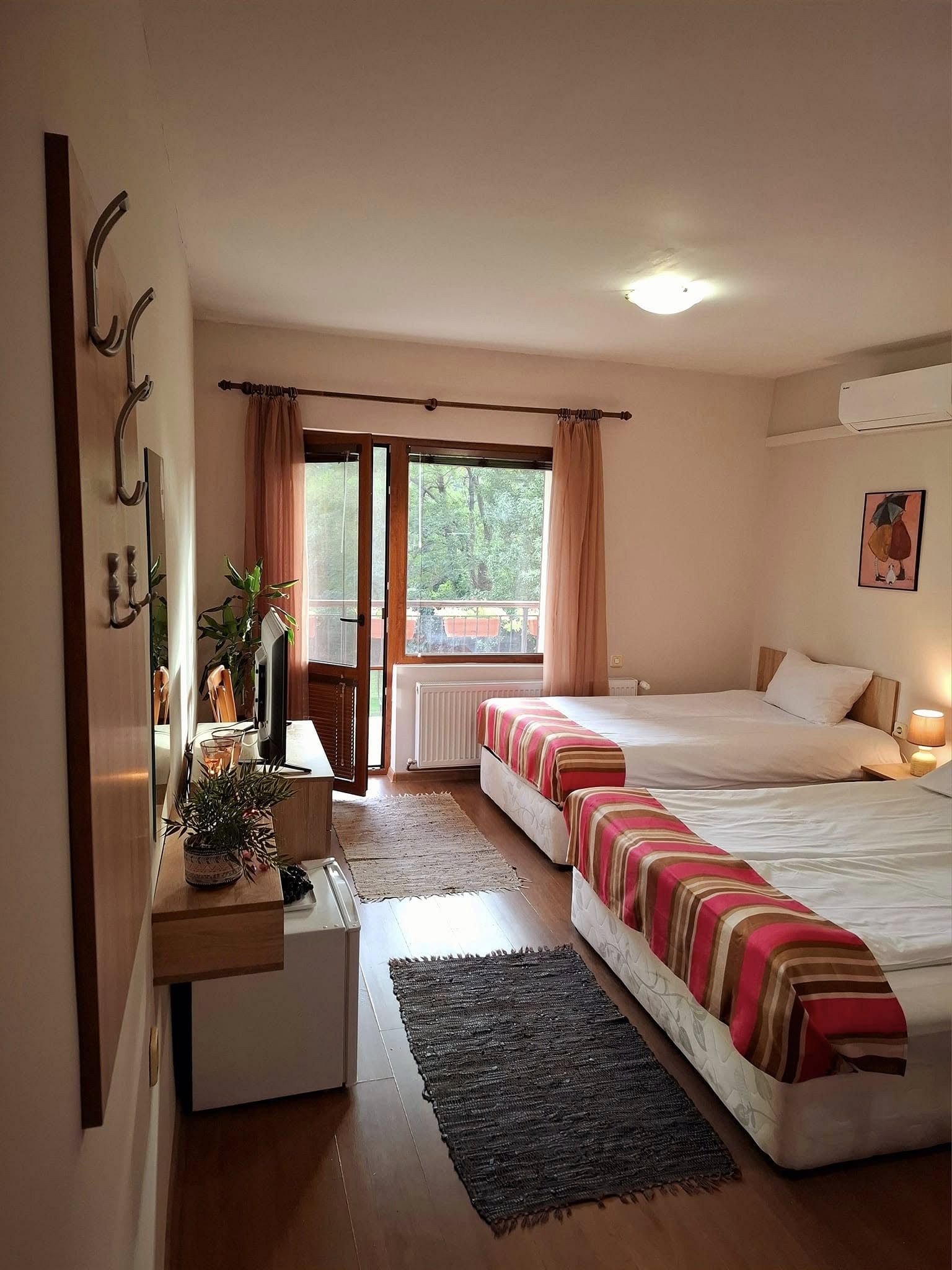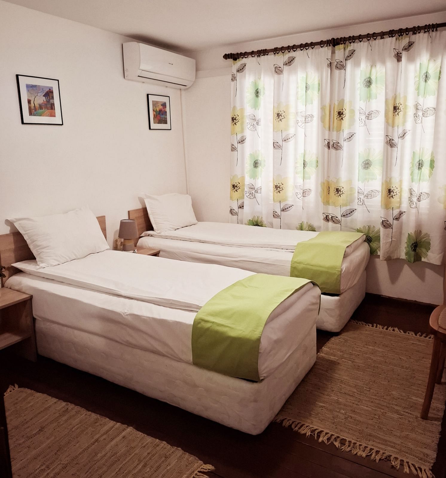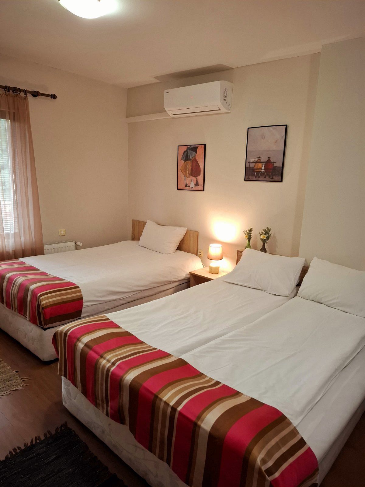 Къща 1 разполага с 14 места, разпределни 5 спални помещения - 1 двойна и 4 тройни стаи, всяка със собствен санитарен възел, кабелна телевизия и Wi-Fi.