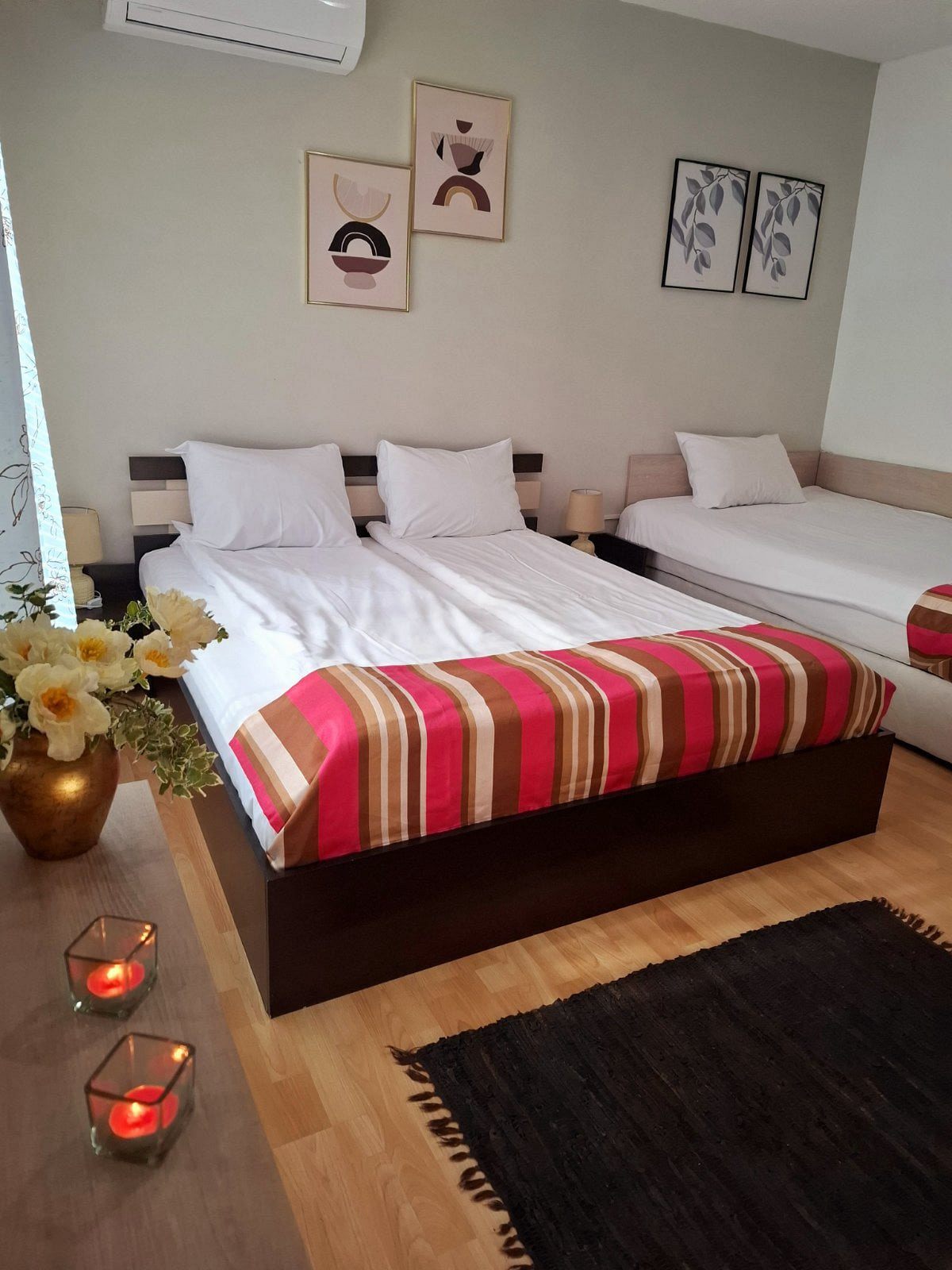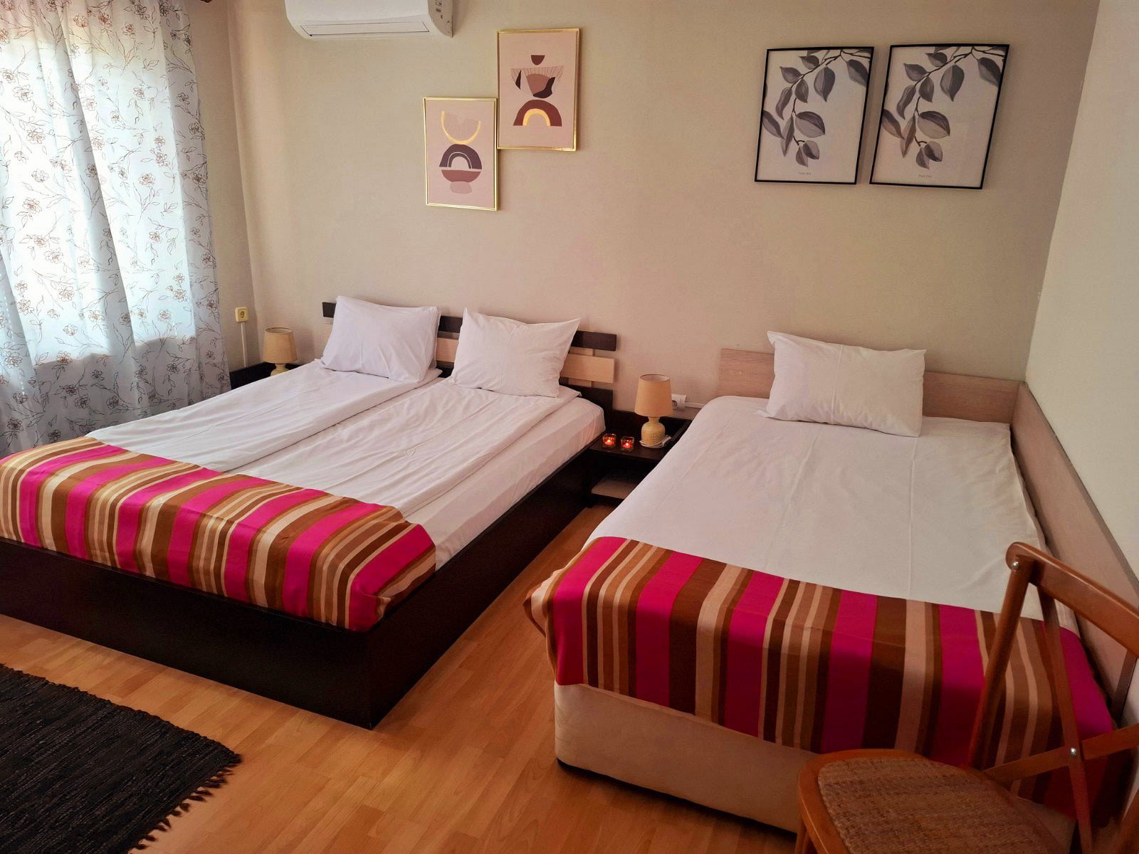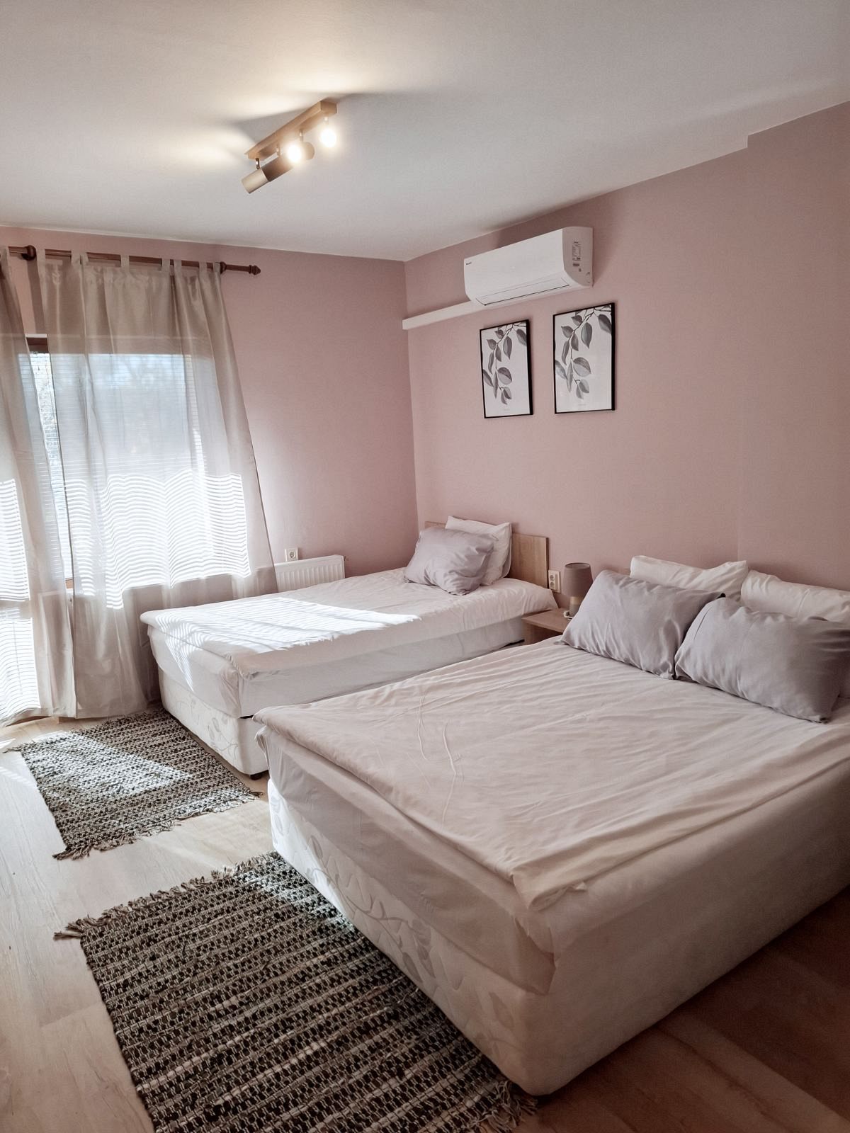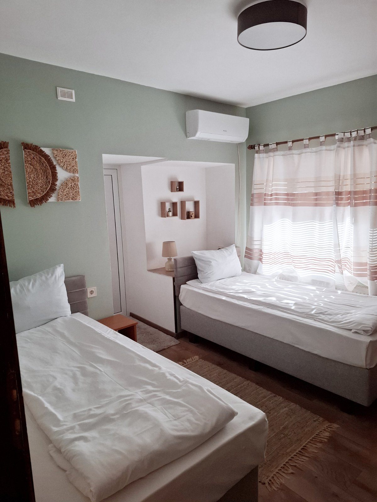 Къща 1 разполага с 14 места, разпределни 5 спални помещения - 1 двойна и 4 тройни стаи, всяка със собствен санитарен възел, кабелна телевизия и Wi-Fi.