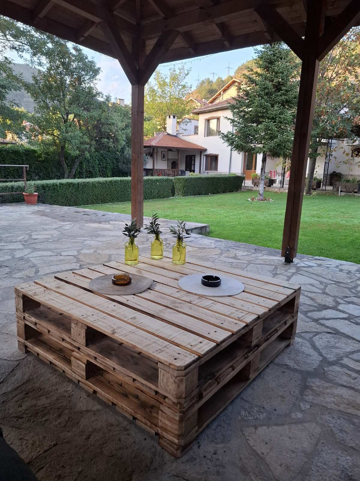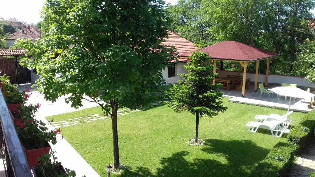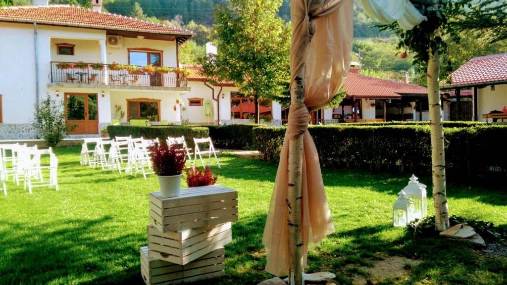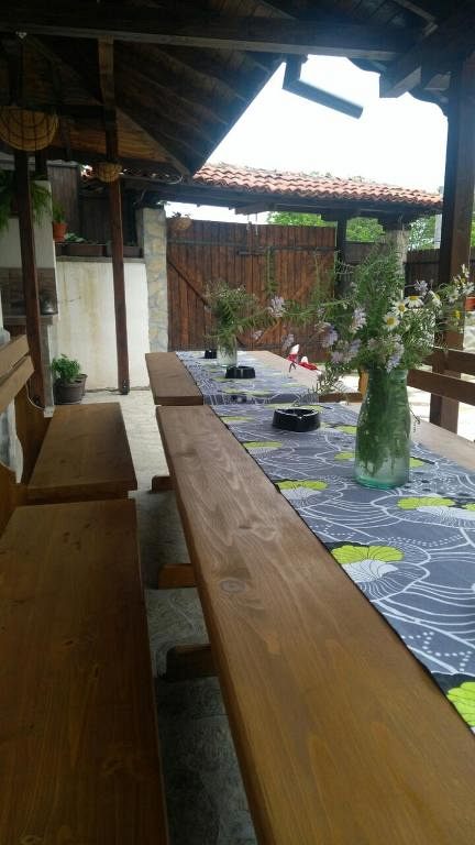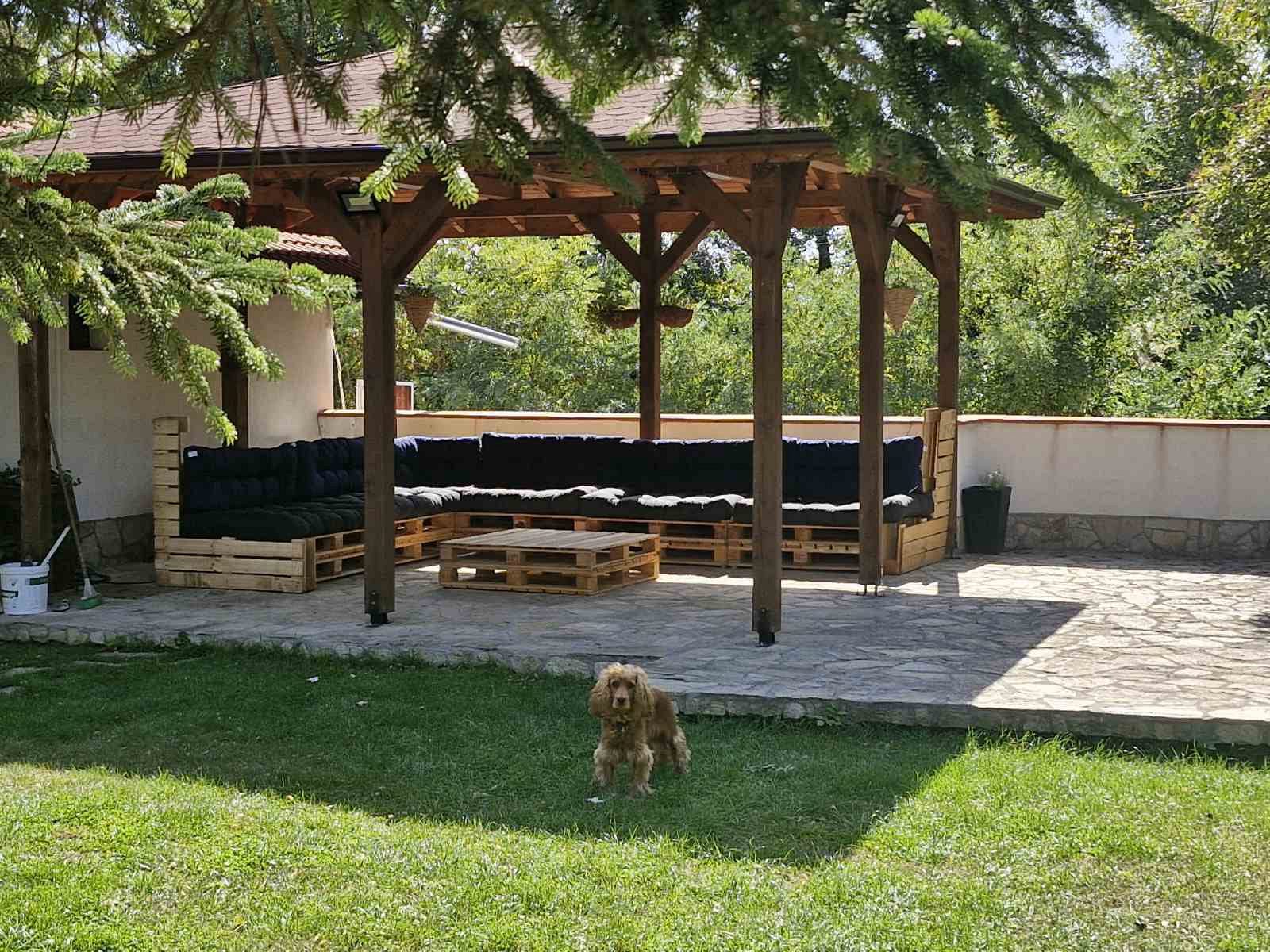 В красиво озеленения двор, в непосредтвена близост до трапезарията се намира просторна лятна кухня с пещ и барбекю.
