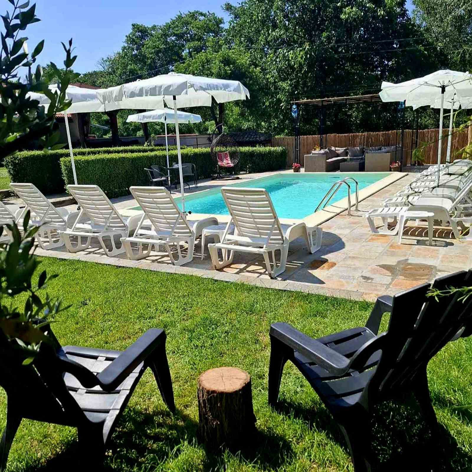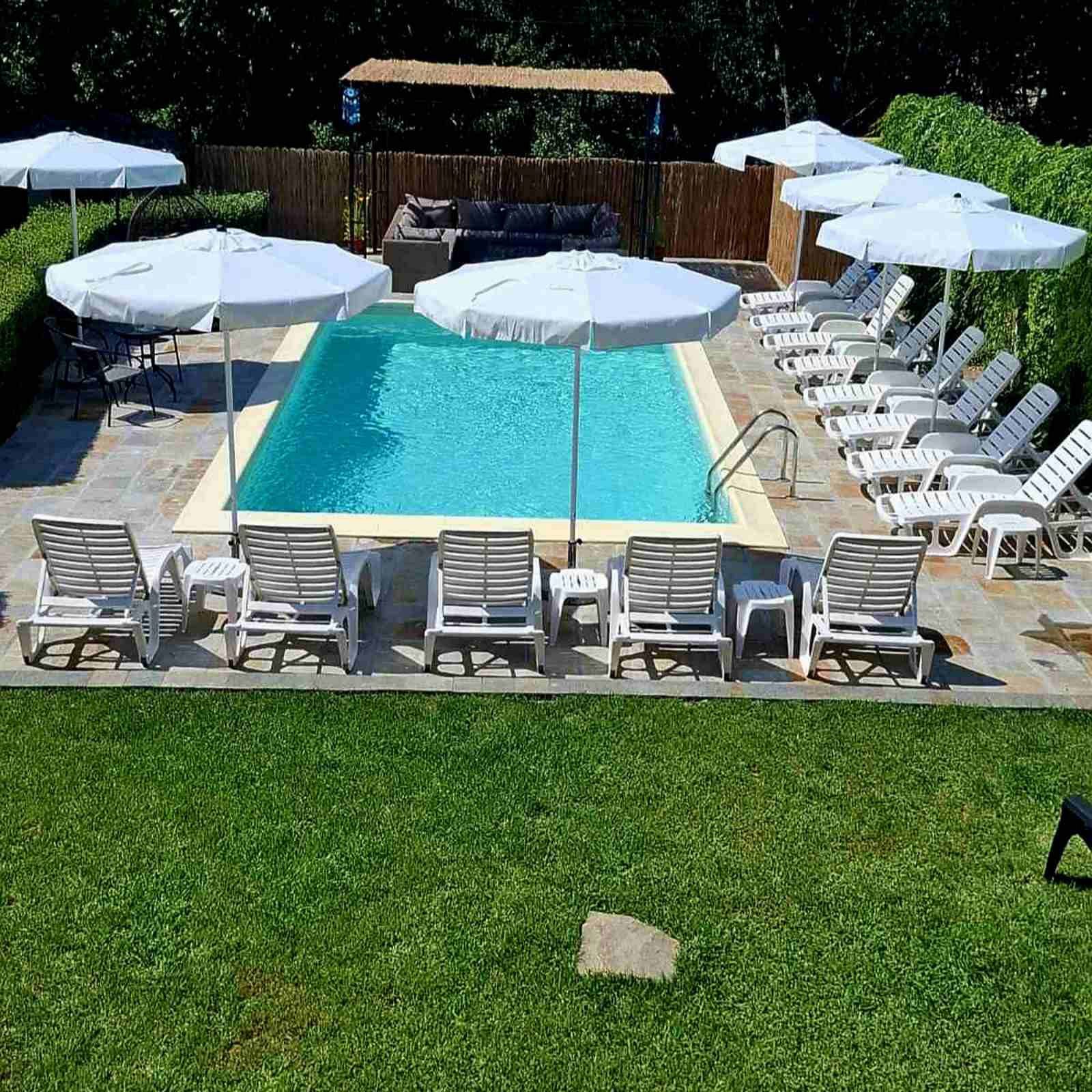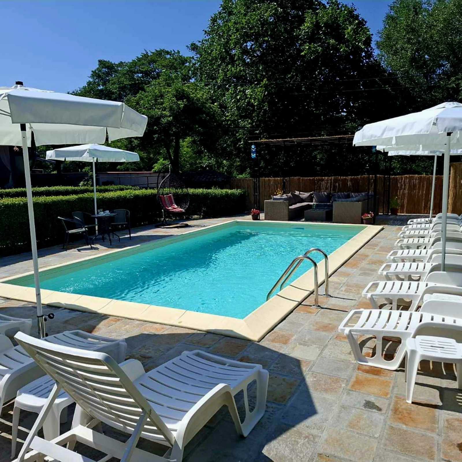 За пълен релакс през топлите месеци на ваше разположение е сезонен вкопан басейн, около който има място за всеки гост, с осигурен шезлонг и чадър.