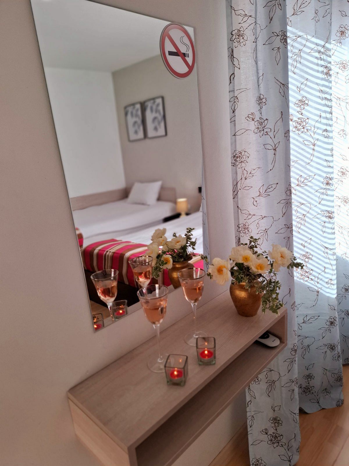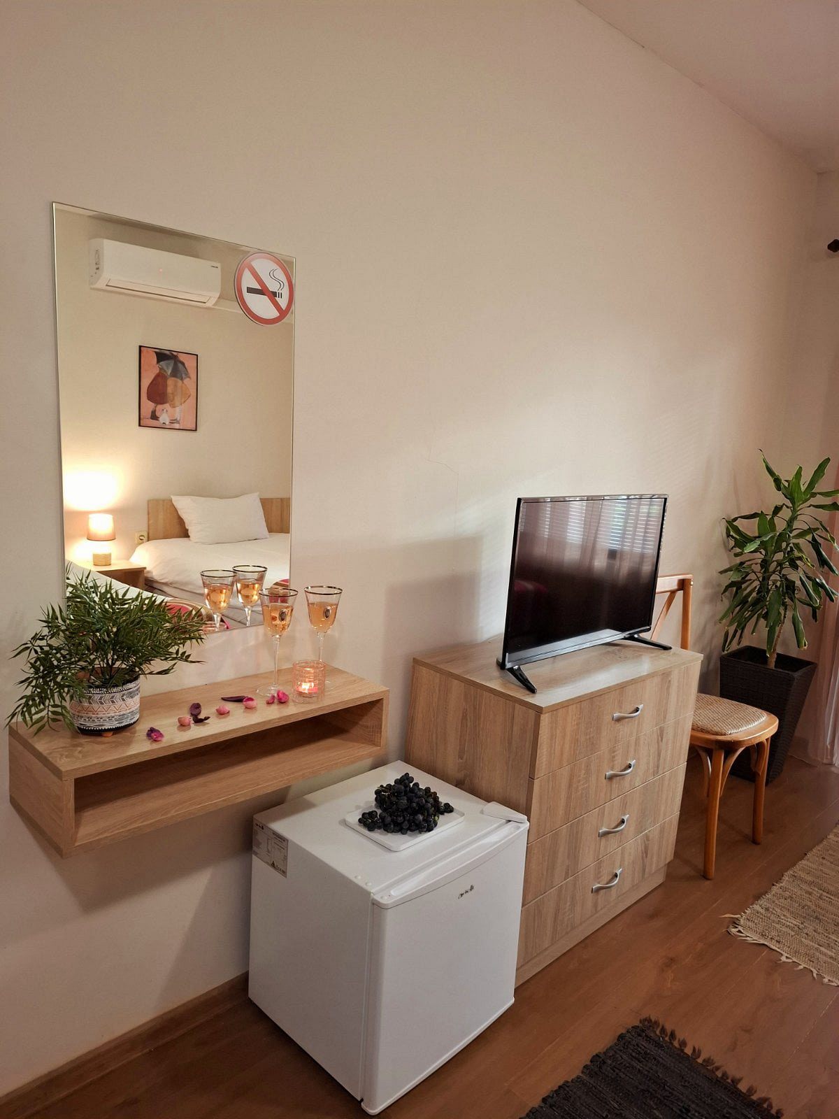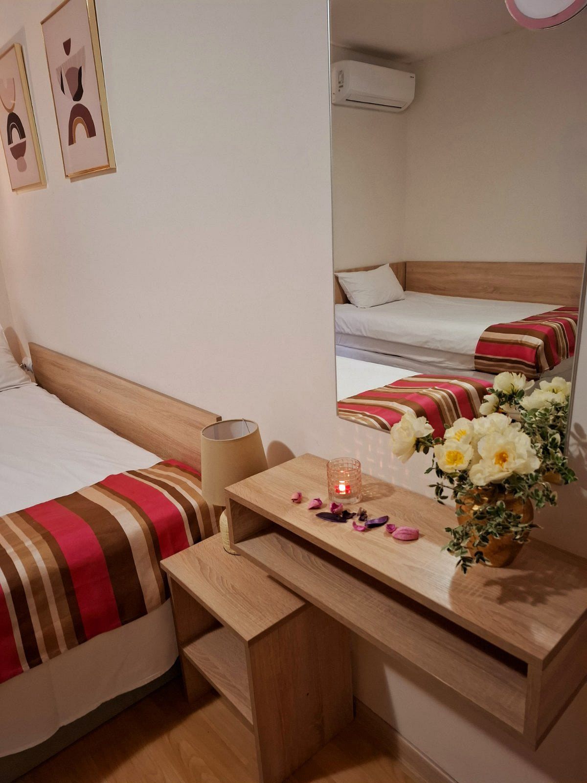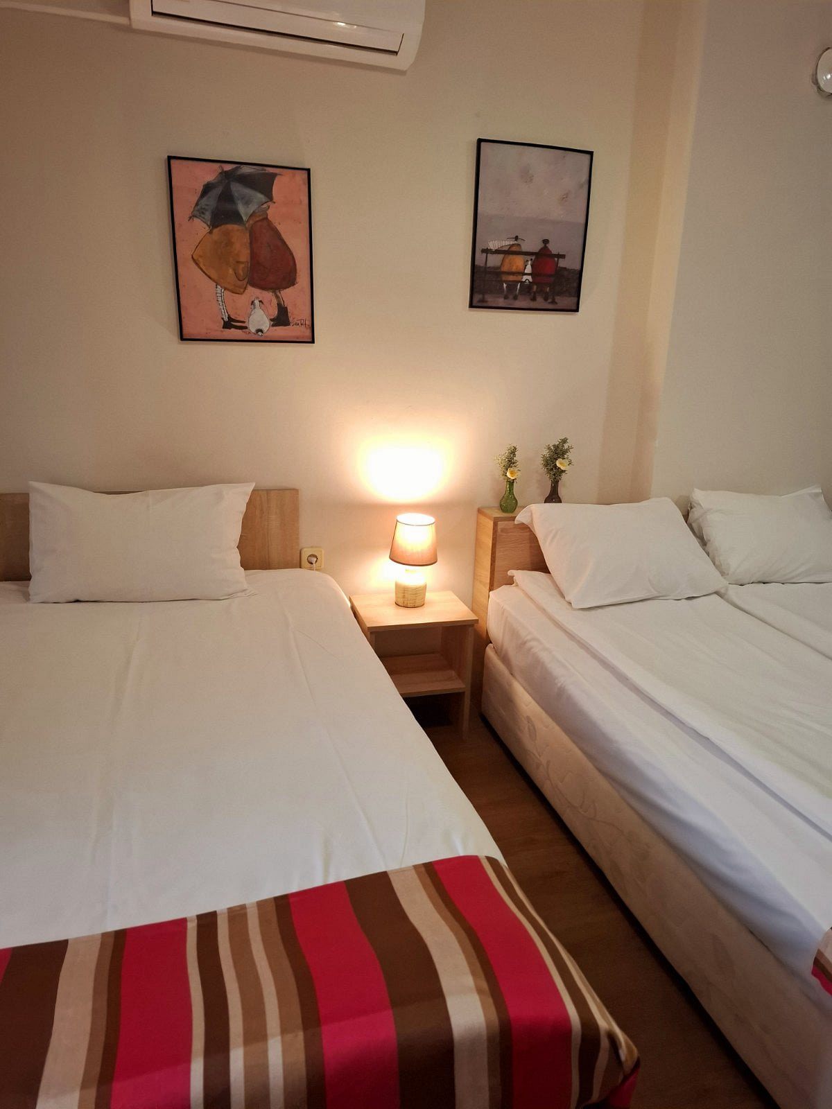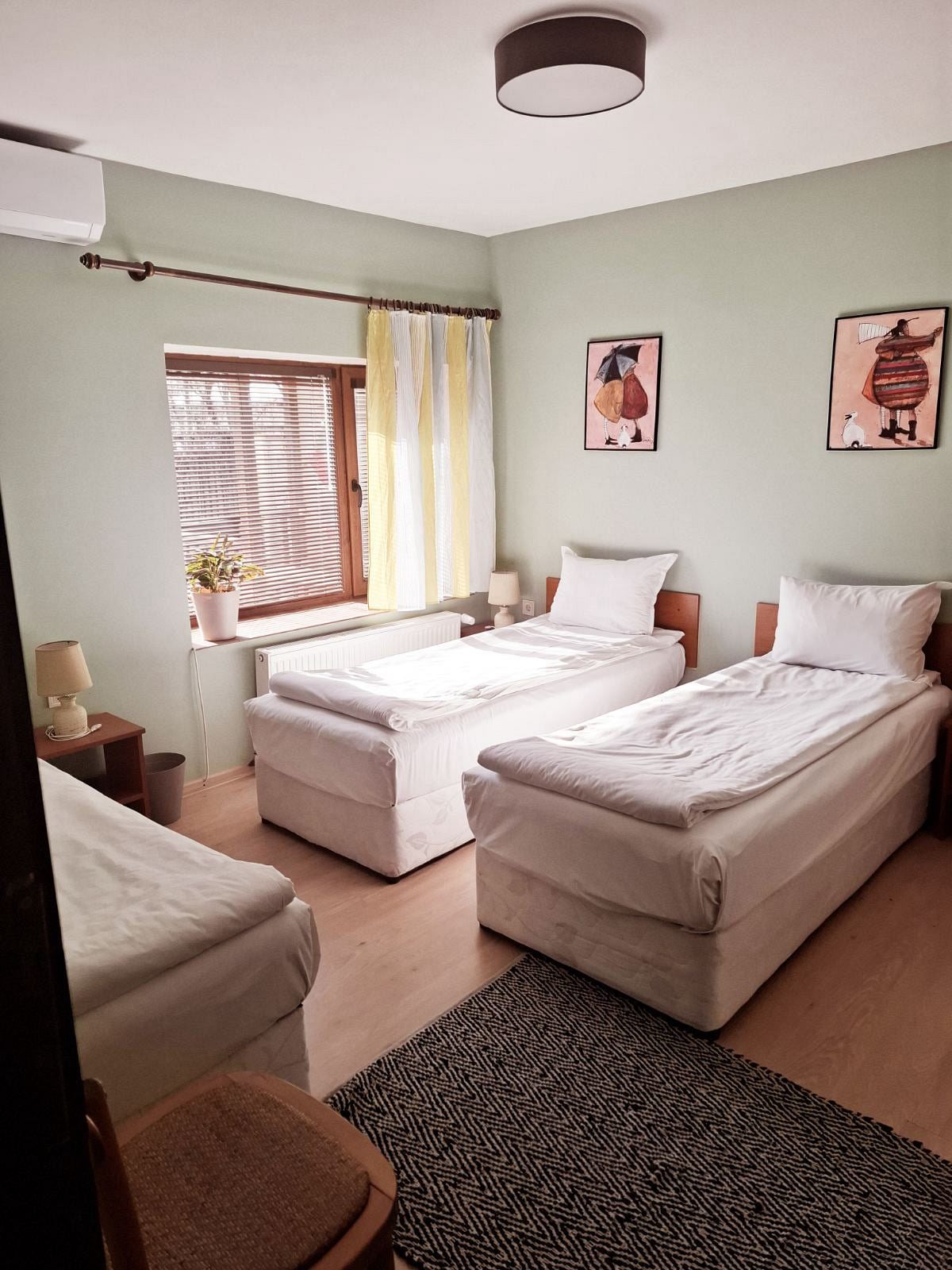 Къща 2 предлага 6 места, разпределени в 3 двойни стаи, всяка собствени санитарни възли, кабелна телевизия и Wi-Fi.