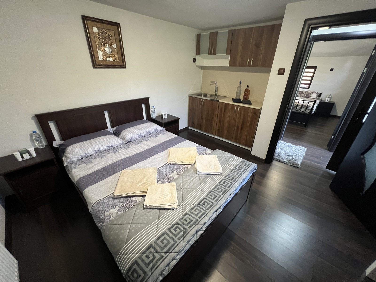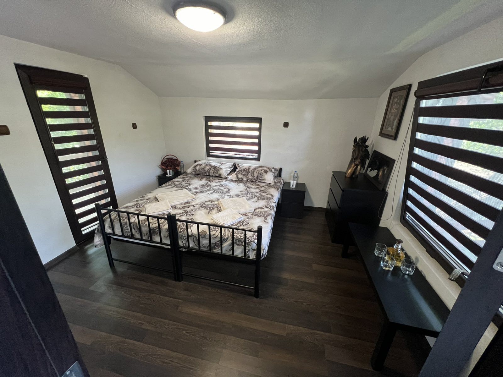 Вторият етаж включва 2 двойни стаи, дневна с диван, кухня и широка тераса с маса. На етажа се стига по външни стълби.