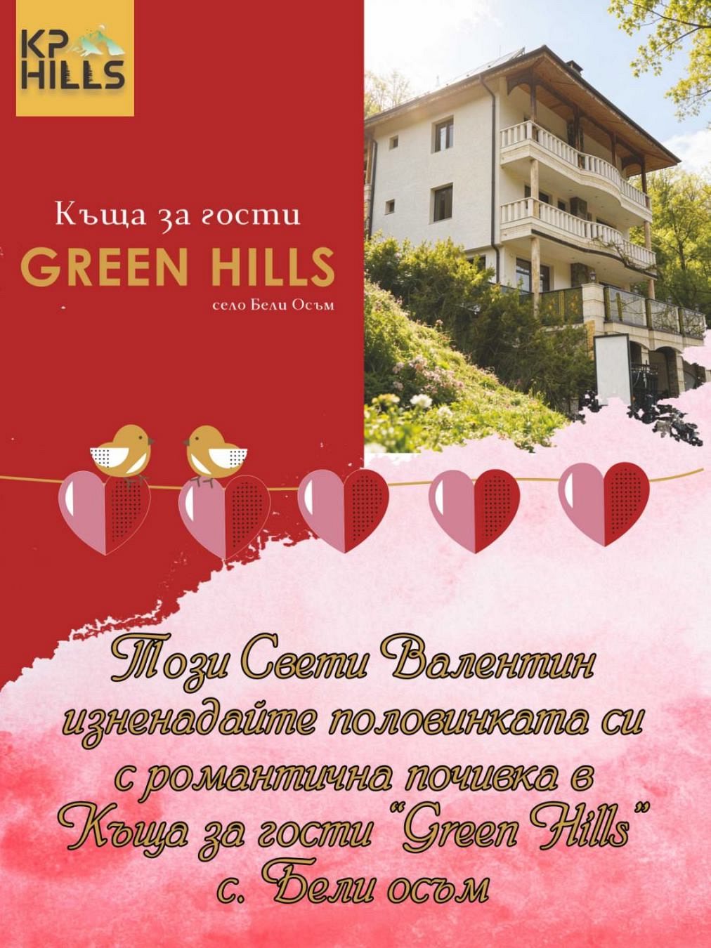 Къща за гости Green Hills се намира в планинското село Бели Осъм - на 7 км от минералните извори в с. Чифлик, на 17,5 км от Троянския манастир и в близост до един от най-красивите дялове на Стара планина - Народен парк „Централен Балкан”.