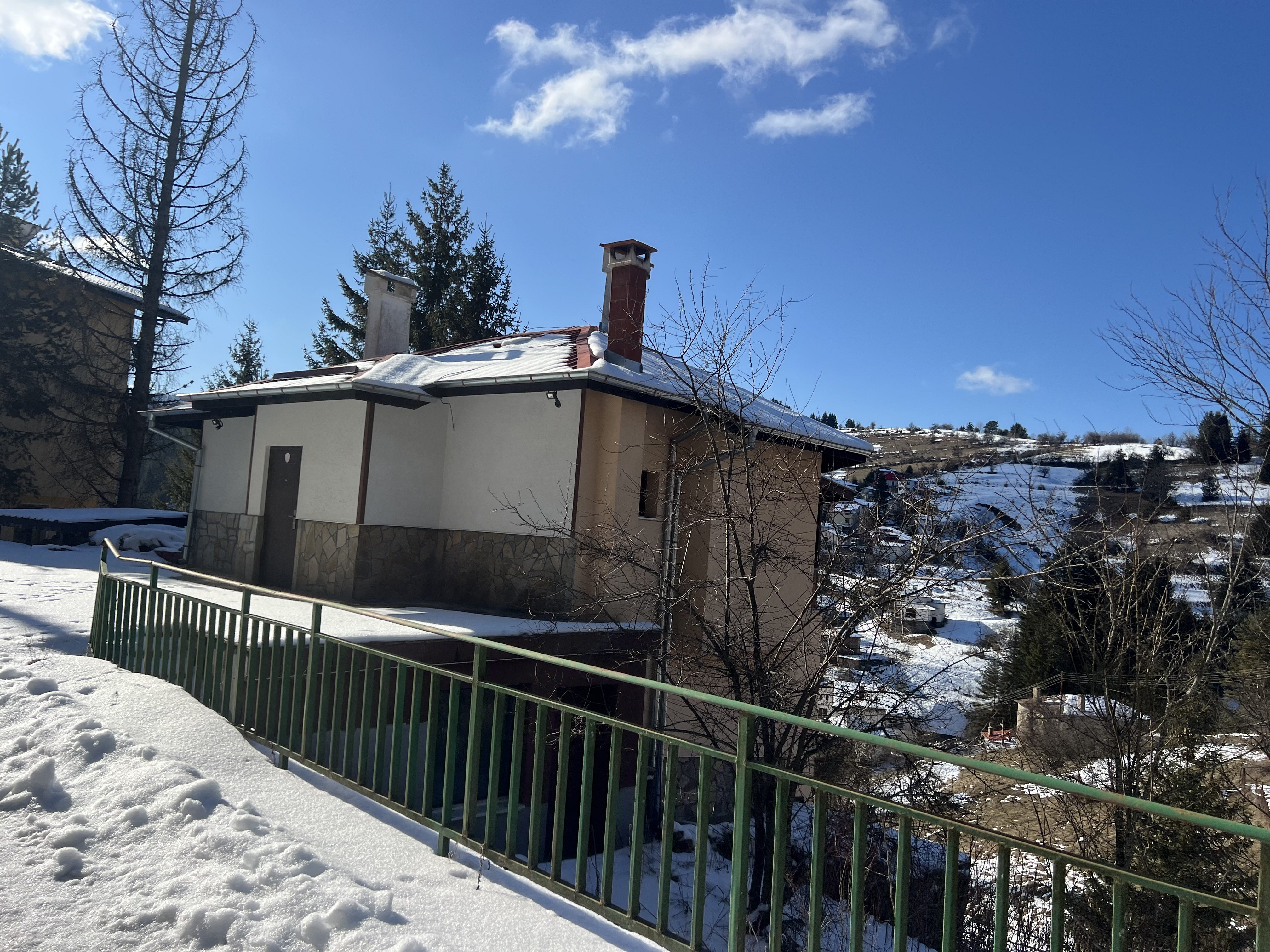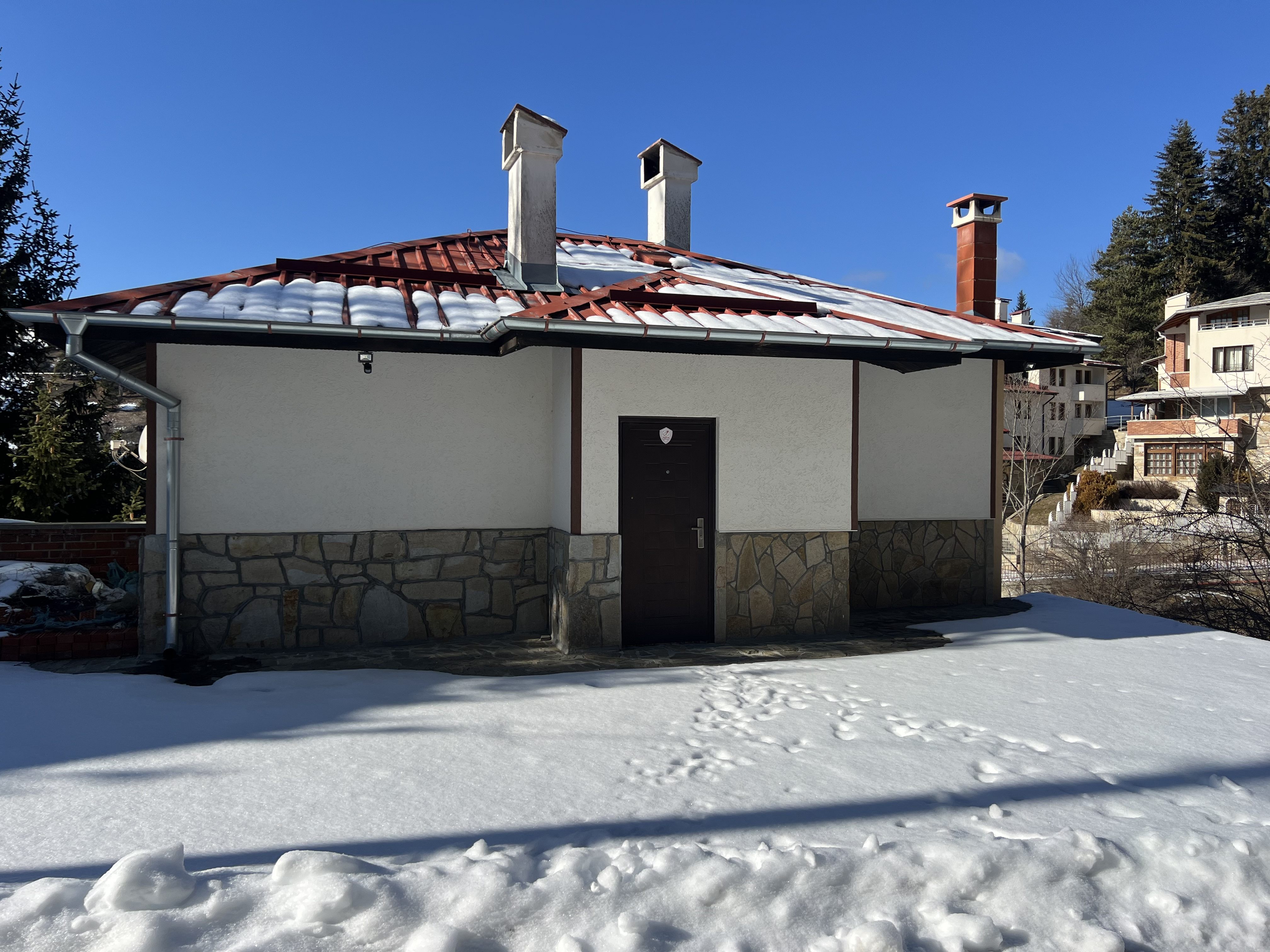 Отоплението през студените месеци е с локално парно на пелети. Камината на дърва допълва пространството с топлина и усещане за домашен уют. Тя създава приятна атмосфера, превръщайки мястото в естествен център за спокойни и споделени моменти.