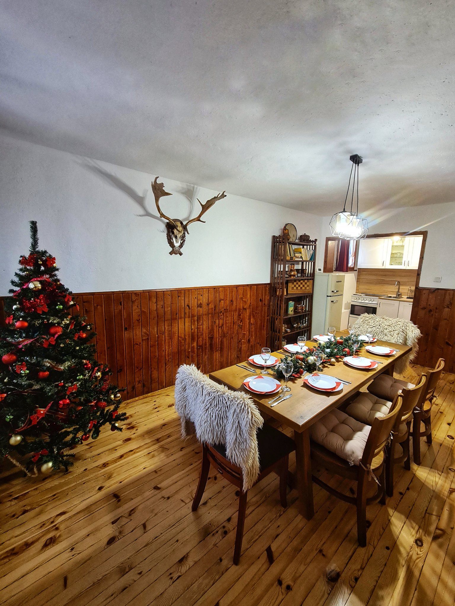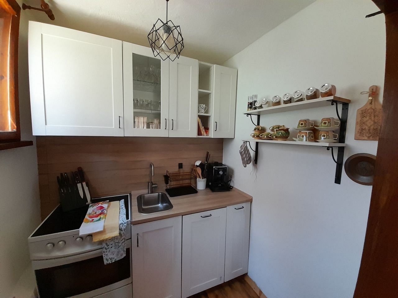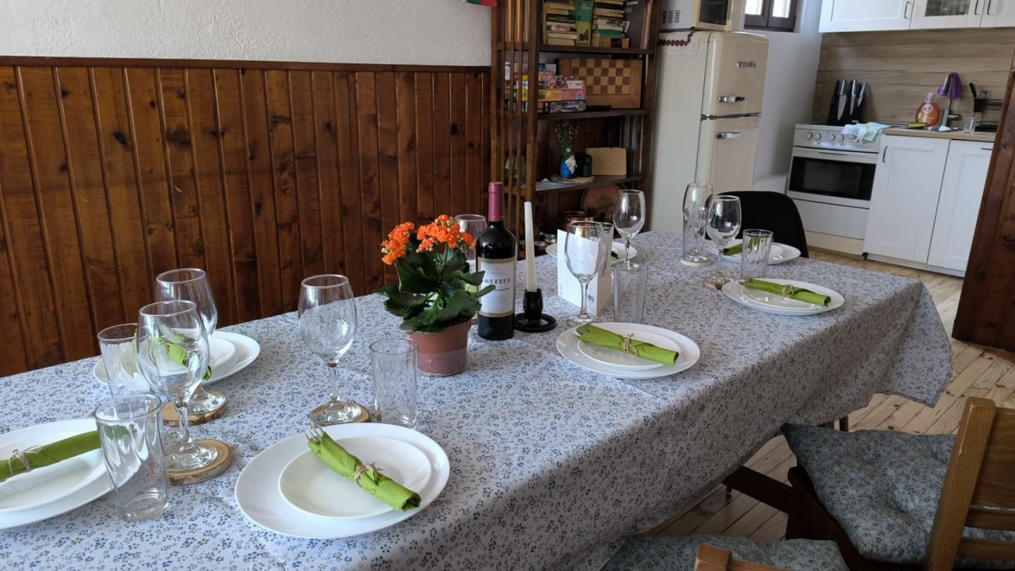 - Първи етаж - уютна трапезария с кът за хранене; напълно оборудвана кухня, в която да приготвите храната си самостоятелно, наслаждавайки се на любимите си домашни рецепти; санитарен възел с тоалетна.