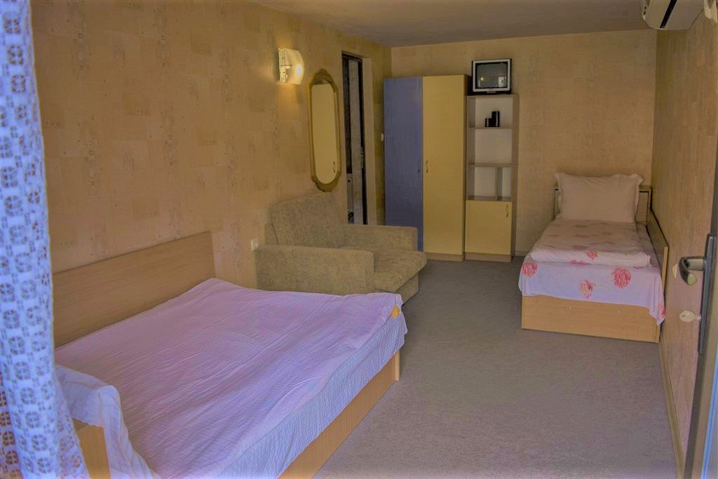 Къща 1 - за 7 гости, предлага 2 двойни и 1 тройна стаи, всяка със собствен санитарен възел.