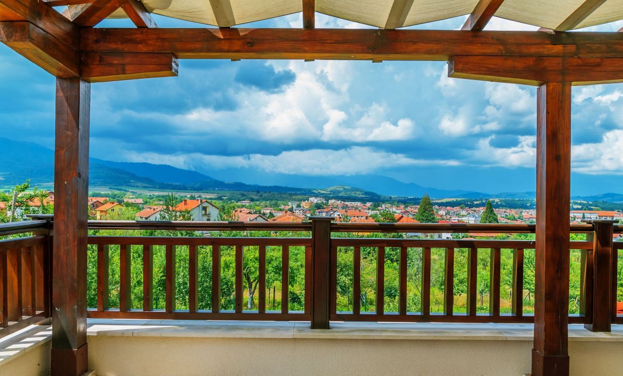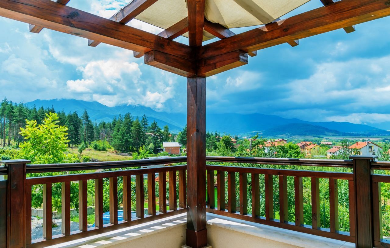 Има директен излаз от трапезарията към верандата. Верандата е изцяло покрита от просторната тераса на втория етаж на къщата и долепения до нея малък навес, от където се открива панорамен изглед над град Вършец към трите най-високи върха на Западна Стара планина: Миджур, Ком и Тодорини кукли, от където идва и името на къщата - Панорама 3D.