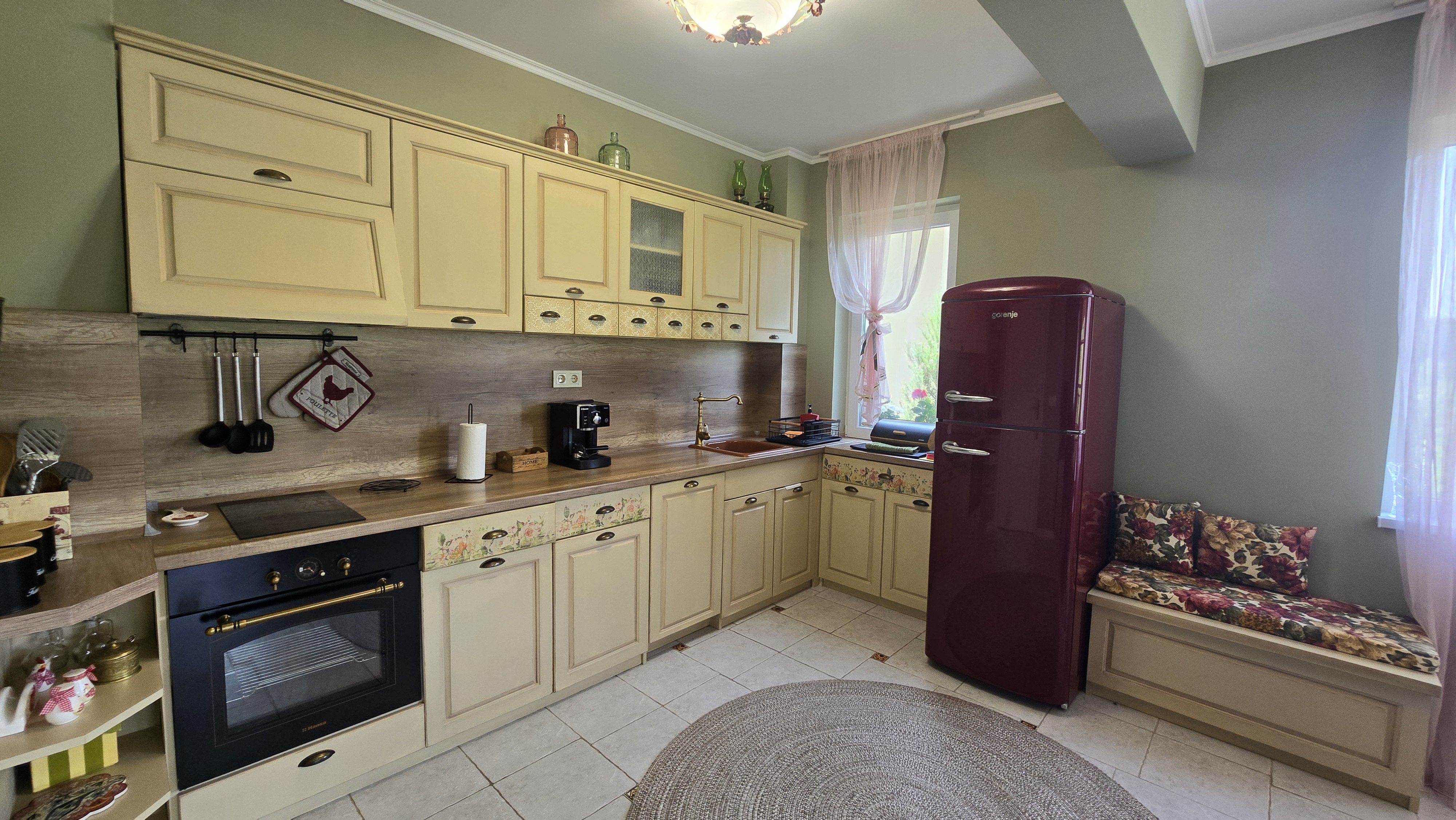 - Кухня, оборудвана с хладилник, стъклокерамичен плот, фурна, съдомиялна, кафемашина, електрическа кана, съдове за готвене и хранене, прибори, чаши;
