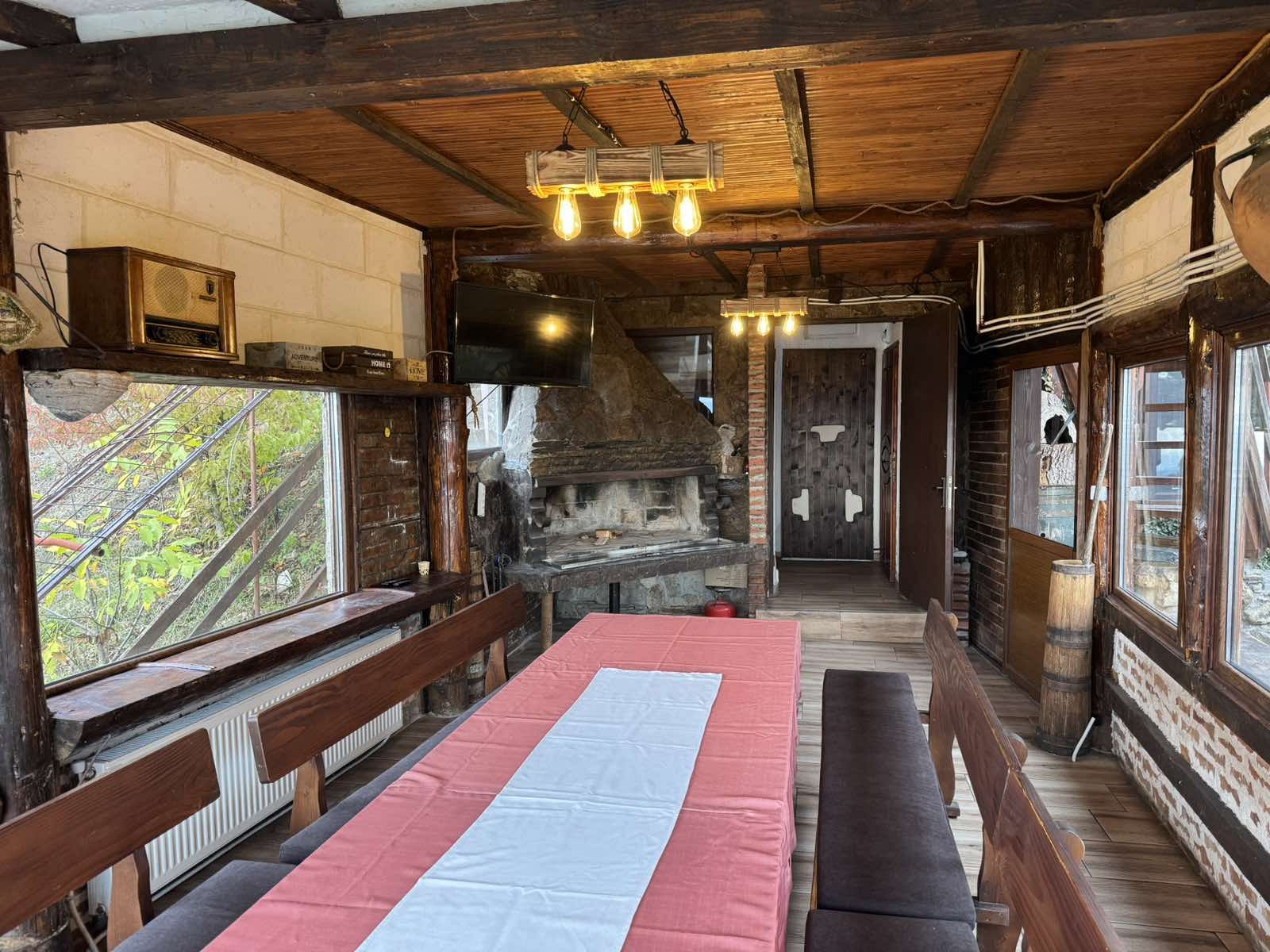 Вила 1 (Голяма) предлага напълно оборудвана механа за 25 човека с прибори и пособия за готвене и сервиране, музикална уредба и телевизор. Камината в механата осигурява уют и топлина. Вилата предлага идеално място за релакс и почивка, приятелски или семейни събирания. Гледката, която се открива от вилата е невероятна.