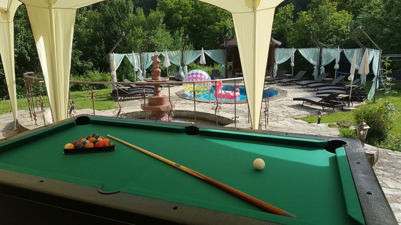 - Bъншен сезонен басейн със соларно покривало и с размери: дължина 12.5 м; ширина 4 м; дълбочина 1.1 м. - Възможност за целогодишно ползване на 6-местно джакузи, което се доплаща. - Възможност за професионална парти украса.
