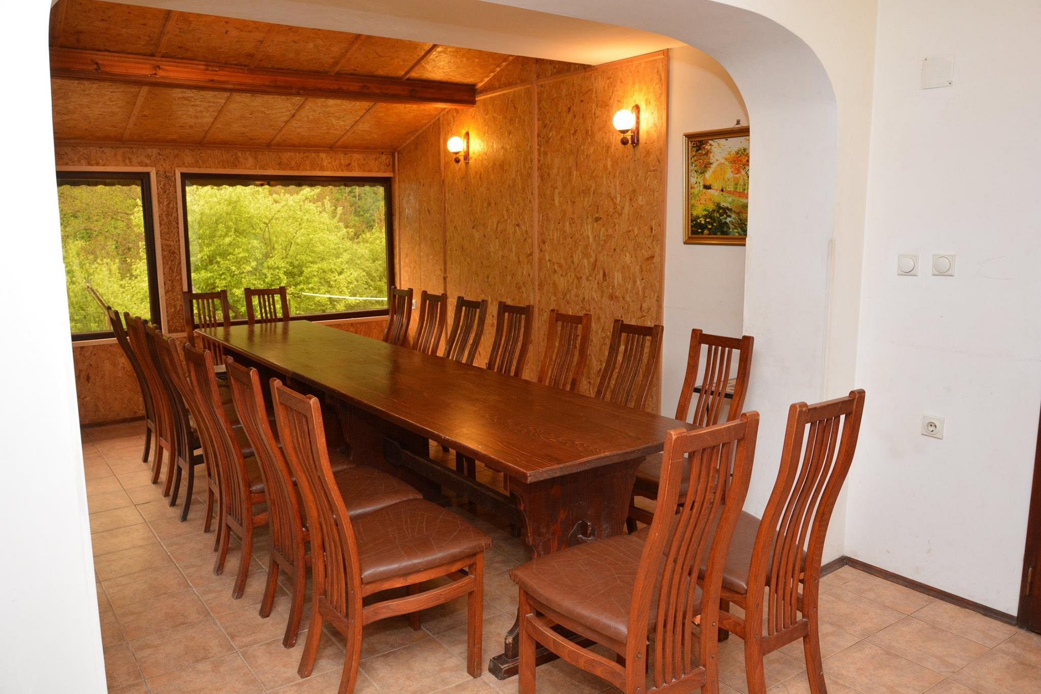 Освен трапезарията в къщата, разполагаме и със самостоятелна оборудвана банкетна зала (50 места), която може да се ползва по желание от гостите, при допълнително заплащане. Залата е шумоизолирана и дава възможност за организиране на тържества, без ограничение на шума. Пригодена е също и за провеждане на семинари и спортни мероприятия.