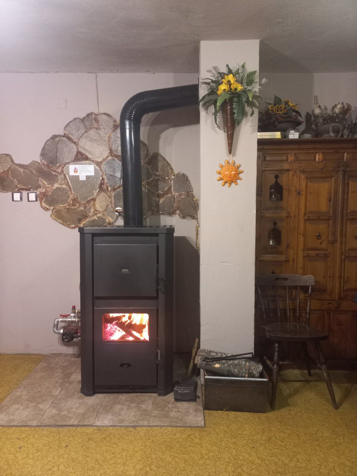 Отоплението през зимните месеци е с камина, свързана с радиатори, печки на дърва и конвекторни печки.
