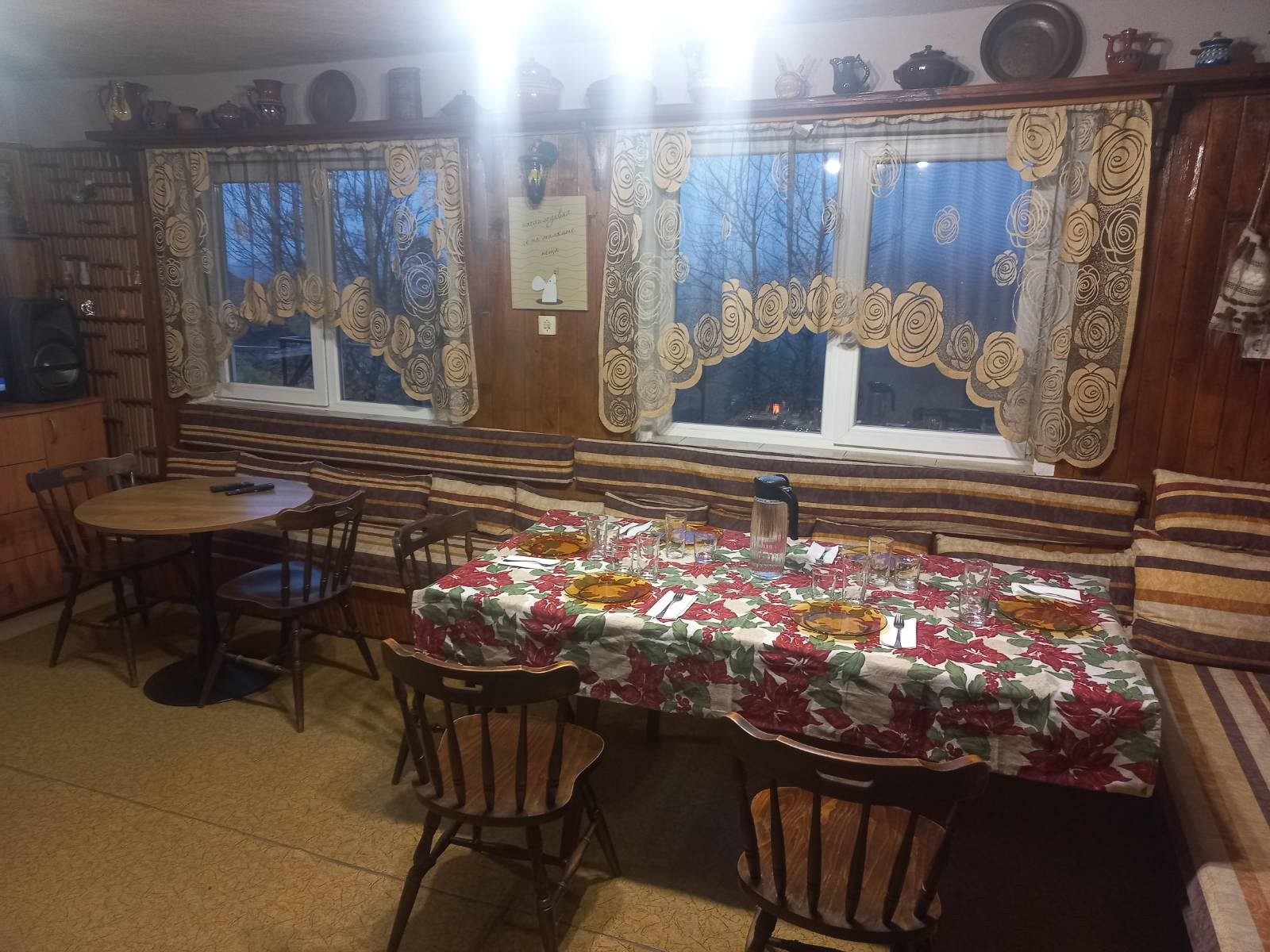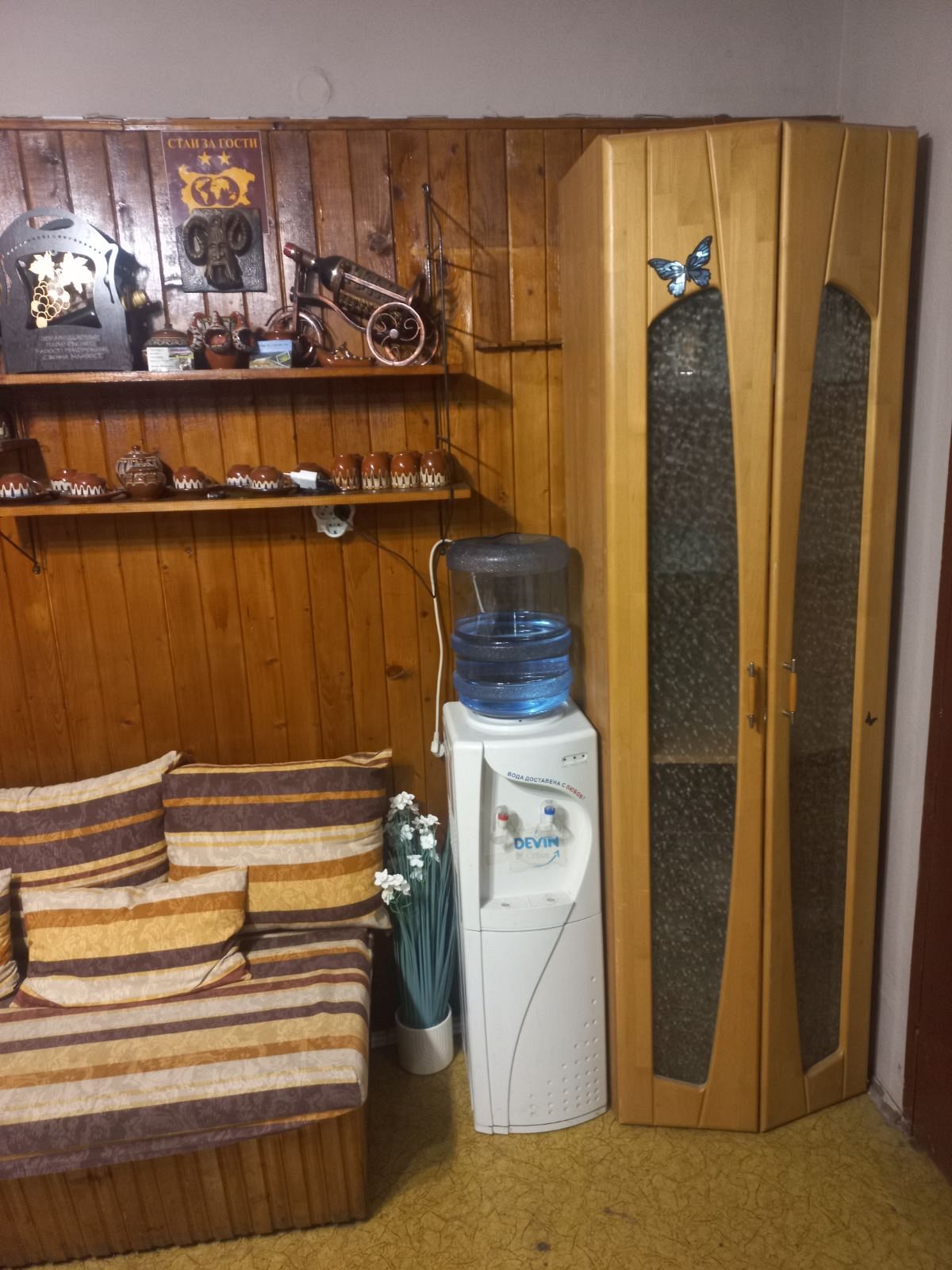 На закритата веранда, за Ваше удобство има също кафемашина, микровълнова, голяма мивка и съдомиална.