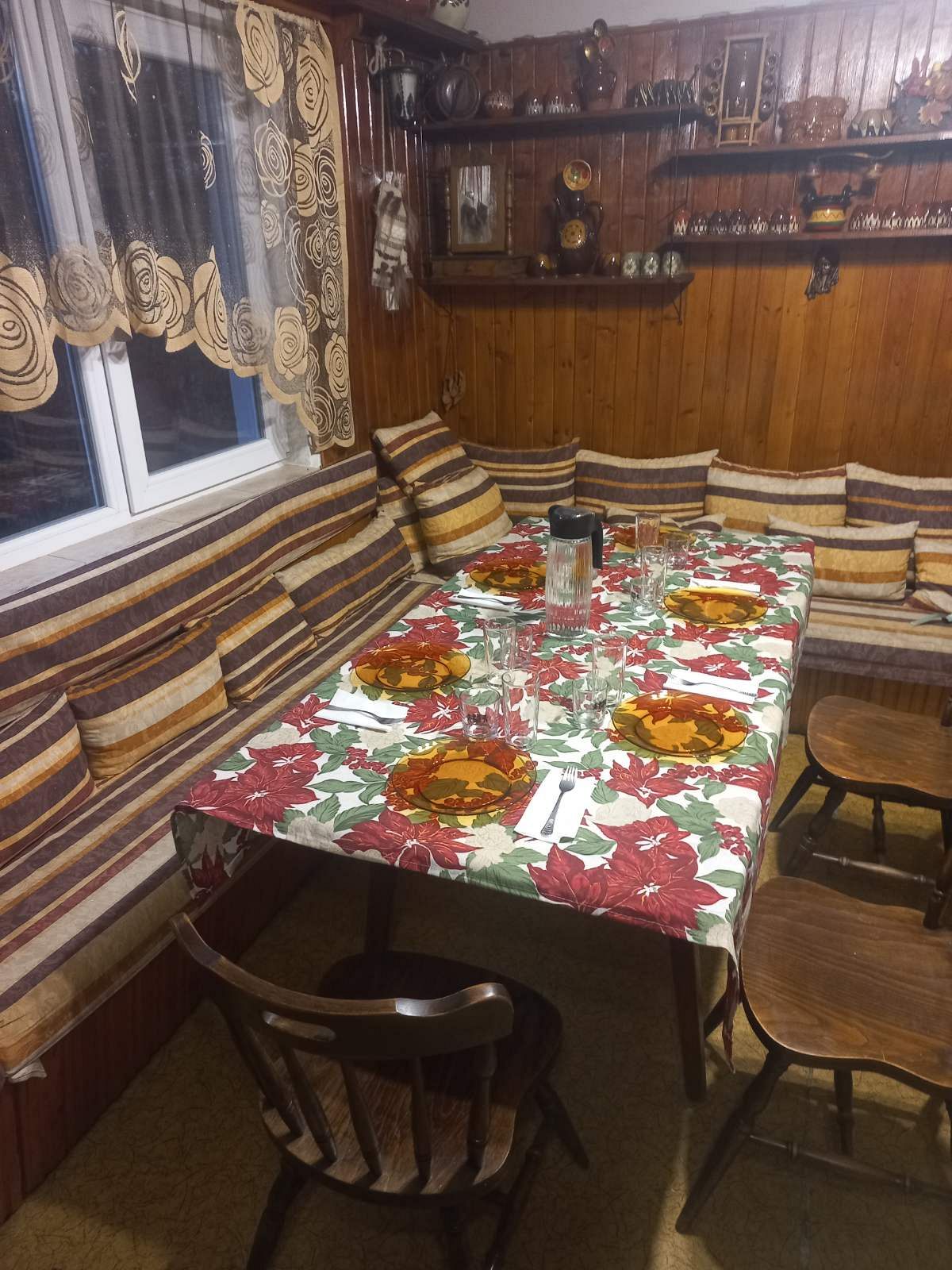 Механата се намира на приземния етаж и има диспенсер за вода. Кухнята е напълно оборудвана, като разполага с необходимата посуда, печка с фурна, 2 хладилника, микровълнова, кафемашина, тостер, ел. скара, тикла (каменна скара), сач, пералня машина, сушилня.
