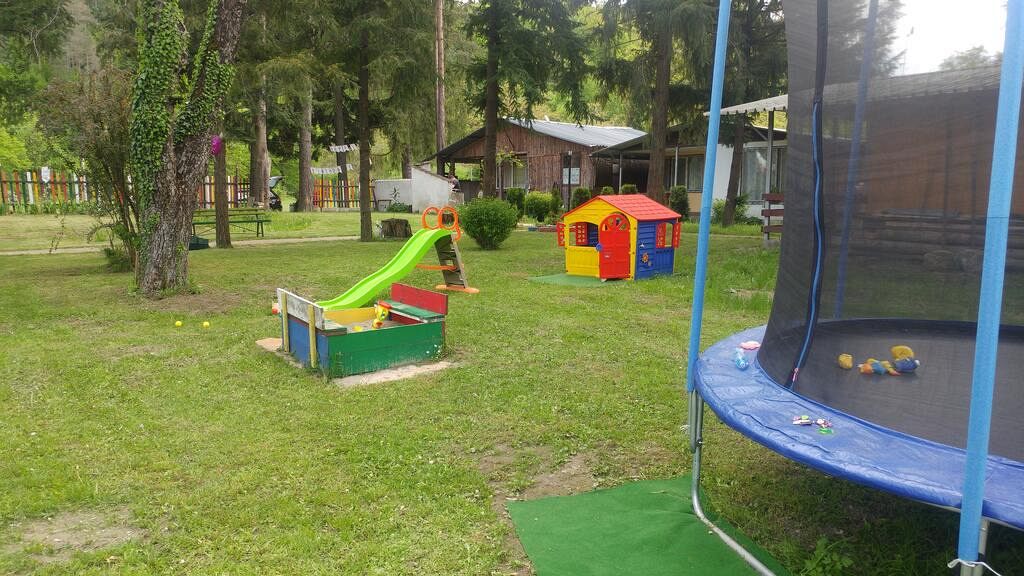 Дворът е голям и озеленен. В него е построено барбекю, а през топлите месеци функционира надуваем басейн.
