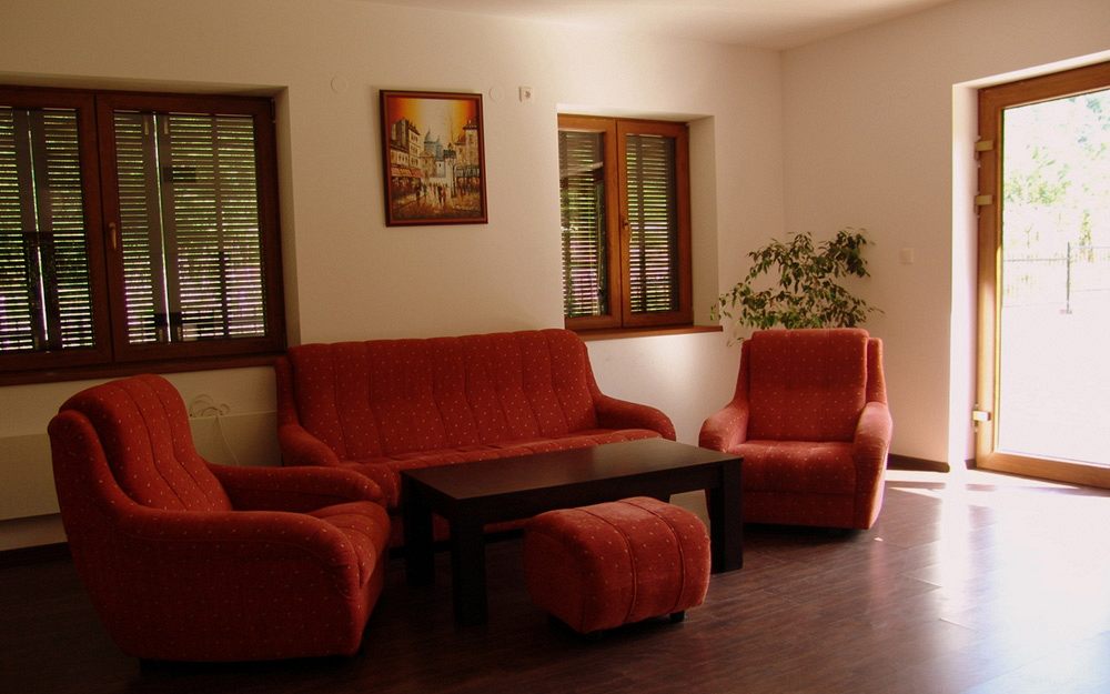 В дневната е обособен кът с мека мебел, в който може да прекарате приятни мигове с приятели или да поиграете с децата, когато времето не позволява да сте навън.