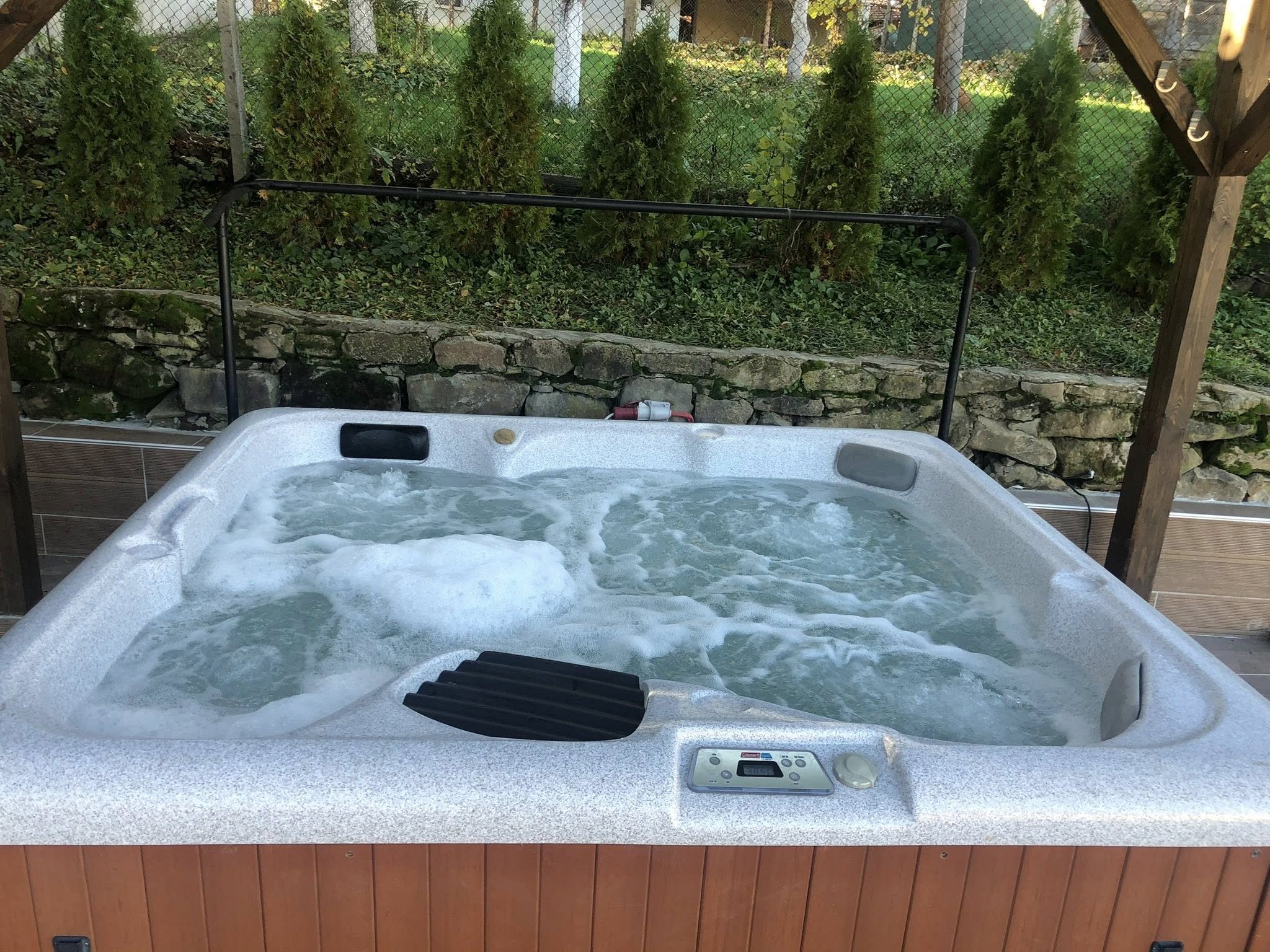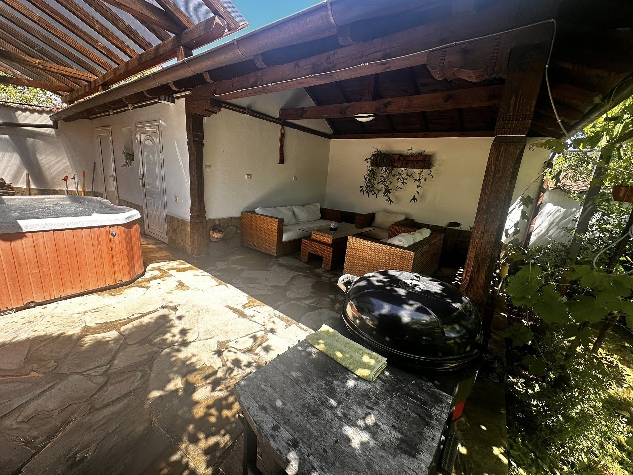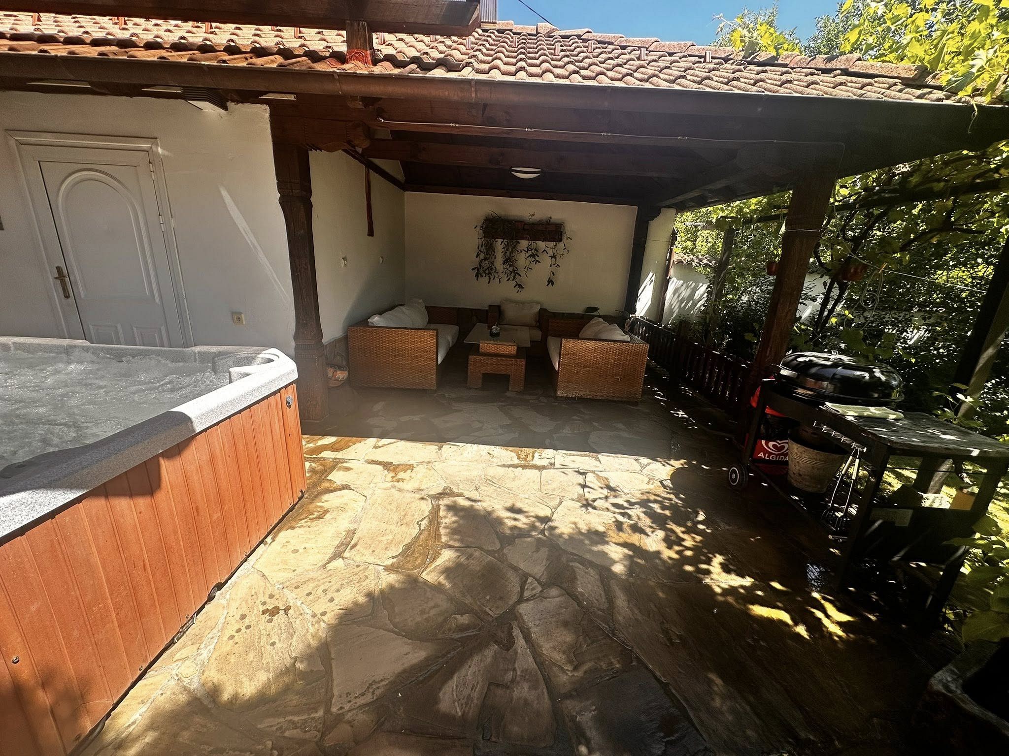 Използването на: външен басейн през лятото с луксозна градинска мебел; джакузи с температура на водата до 40 градуса е безплатно.