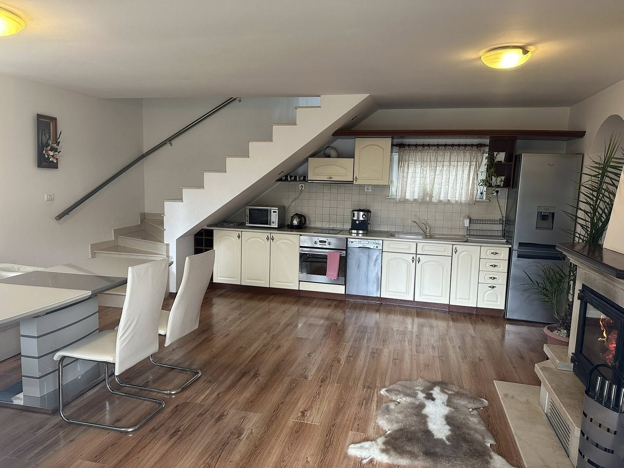 Отоплението във вилата е с локално парно. През летния сезон има голям климатик в коридора, който е достатъчен за охлаждане на цялата къща.