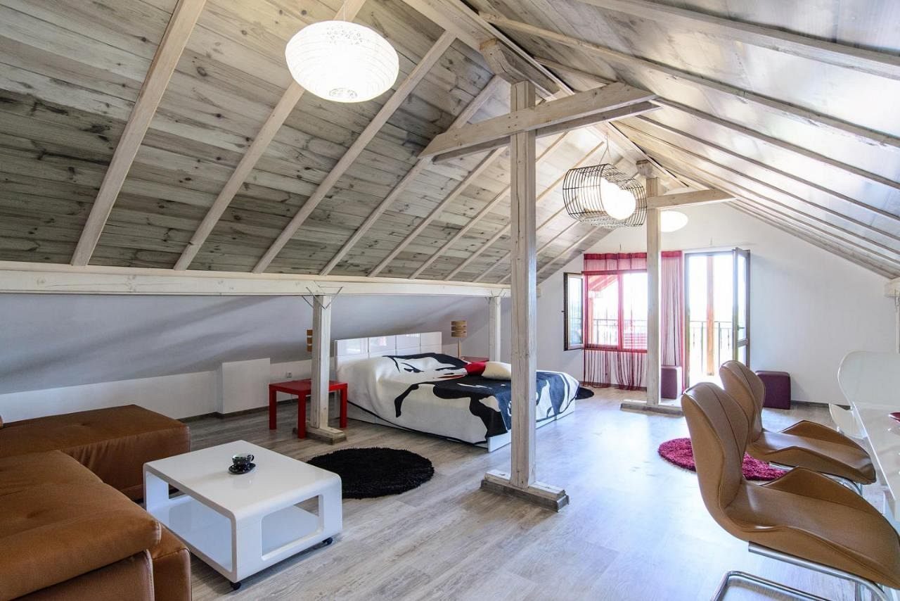 На третия етаж се намира едноспално студио с двойно легло и разтегателен диван. От него се открива прекрасна панорамна гледка.