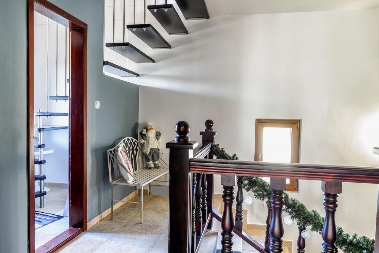 Къщата е триетажна и разполага с 10+4 места за настаняване, разпределени в 5 спални помещения с климатик, телевизия и интернет.