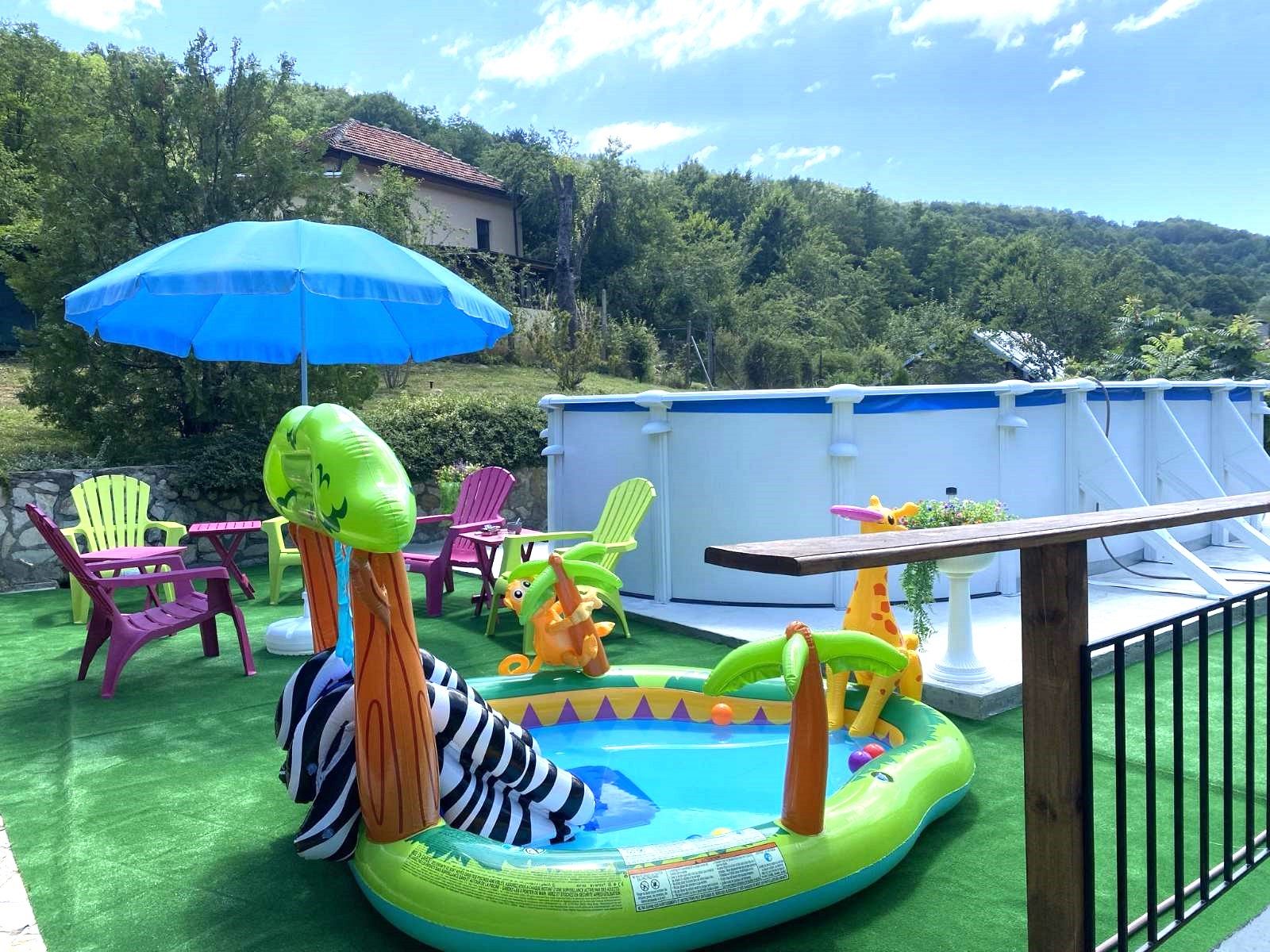 Дворът е обезопасен, с градина с лятна кухня и барбекю, детски кът.