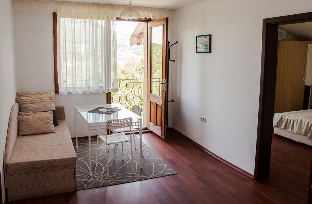 Къщата е на 3 етажа и разполага с 1 двойна самостоятелна стая, 4 двуспални апартамента и 1 президентски апартамент с две спални и всекидневна с кухненски бокс. Налична е бебешка кошара.