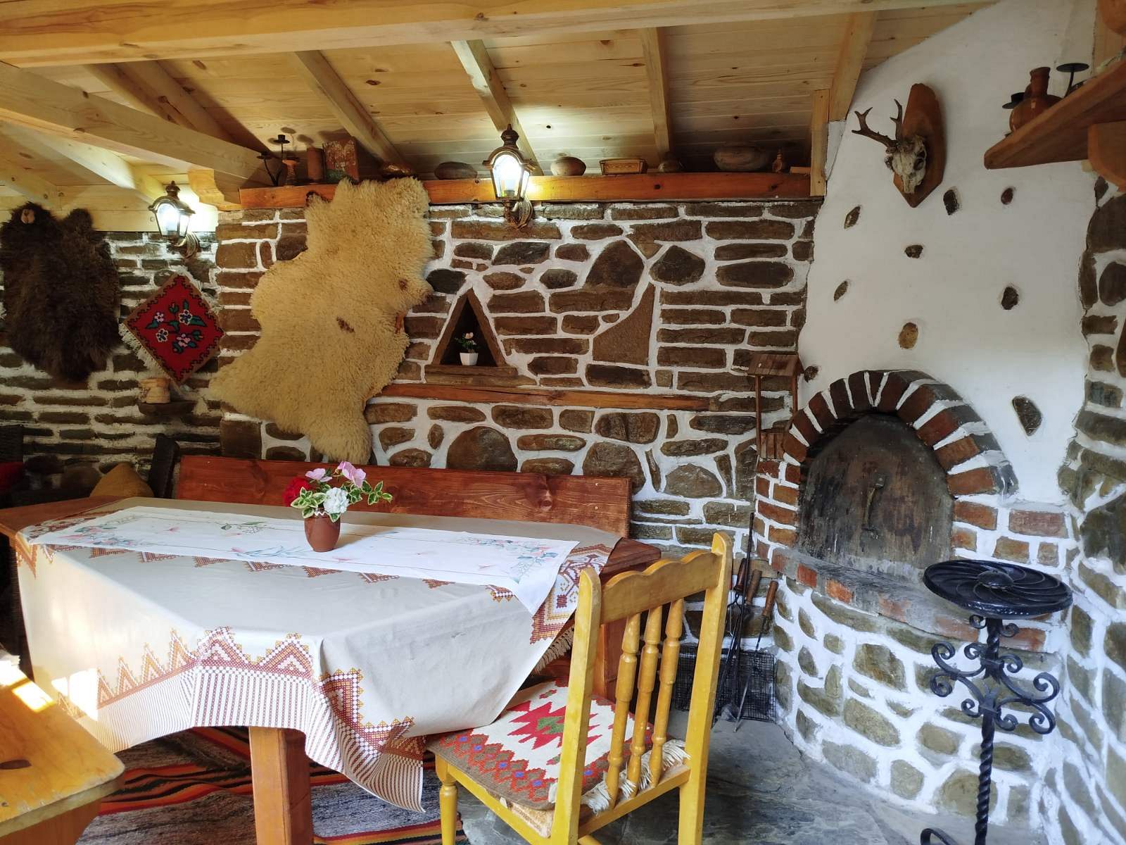 В красиво уредения уютен двор има покрито барбекю-механа с камина, чешма, маса и столове.
