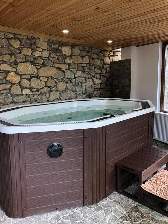 За Вашия комфорт целогодишно предлагаме 10-местно джакузи, разположено в закрито помещение на двора под верандата - с красива гледка към планината, което се ползва при предварителна резервация и допълнително заплащане.