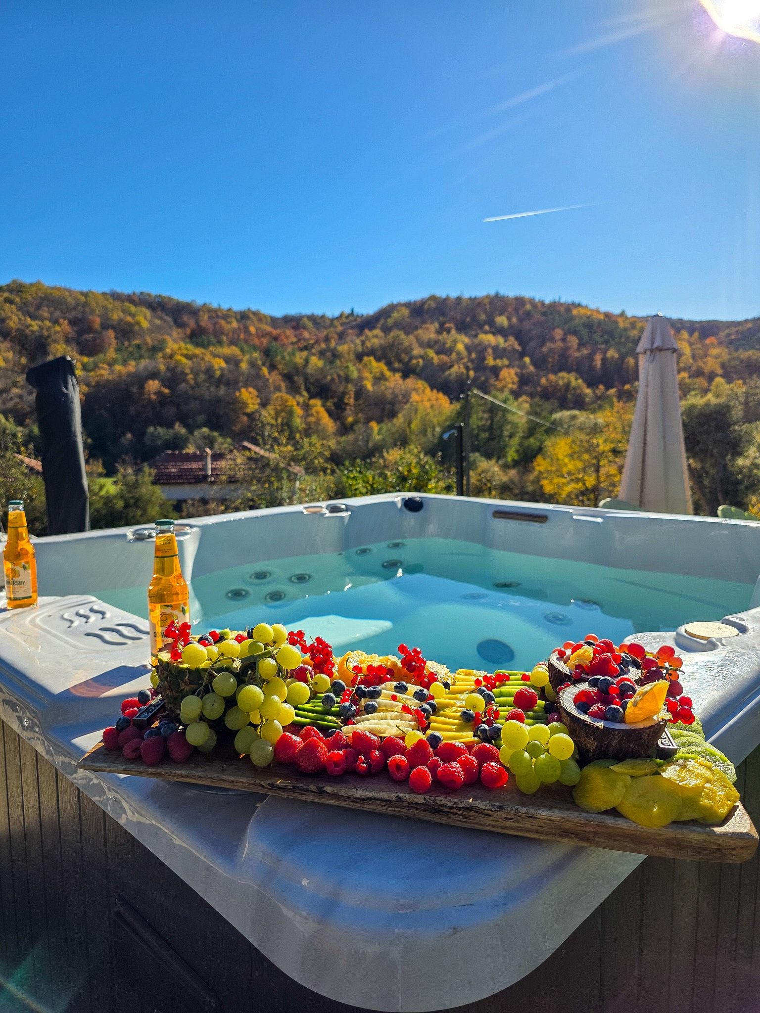 Къщата предлага сезонен басейн и целогодишно джакузи.