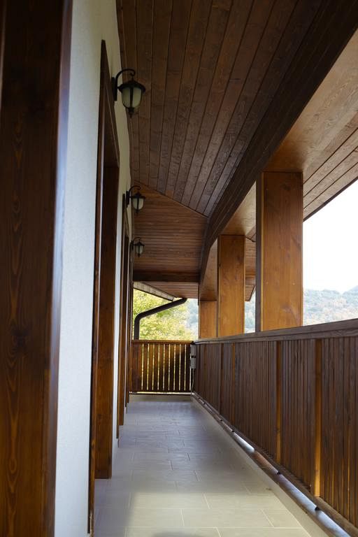 Къща 2 и Къща 3 - Малки (всяка с капацитет 6+2 места): Предлагат домашен уют и комфорт. Всяка от къщите има три самостоятелни стаи (спални) със собствена баня (с вана или душ кабина). Две от спалните са с обширна тераса с изглед към планината. На партерния етаж се намират напълно обзаведената кухня и трапезария с маса за 6 човека, даващи възможност за изява на кулинарите, които искат да се насладят на натуралните екопродукти, предлагани в района. Просторният хол с камина и тераса допълват комфорта и уюта и предоставят допълнително настаняване на двама на диван. Отоплението е с електроуреди. При необходимост може да се осигури подвижно барбекю на дървени въглища.