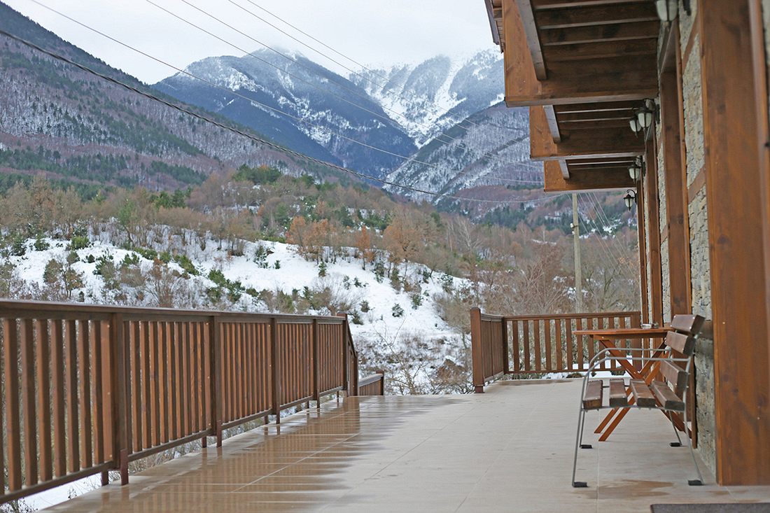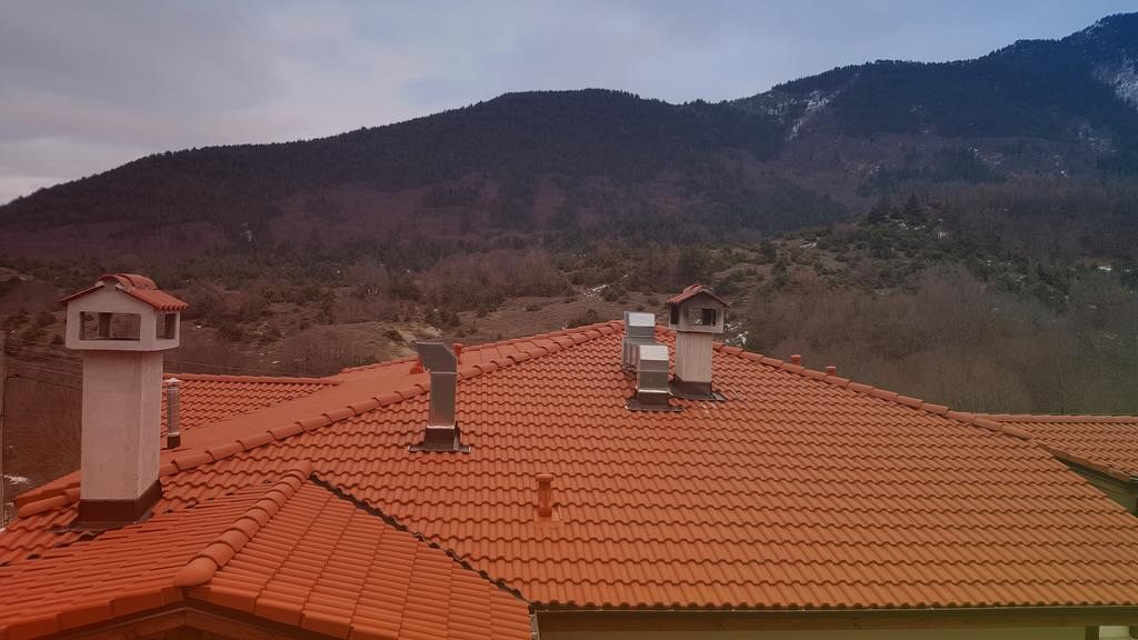 Къща 1 - Голяма (капацитет 10 места): Предлага удобството на 5 двойни стаи хотелски тип с тераса и вана, както и обща сауна, която се ползва от всички гости на къщата. На партерния етаж се намира зала с капацитет 28 човека, с професионална кухня и с голяма камина, създаваща невероятен уют през зимата, както и с широка панорамна тераса, предлагаща прохлада през лятото. Изгледът към планината Славянка е пленителен през цялата година. Отоплението е с локално парно. Допълнително удобство е наличието на професионална скара.