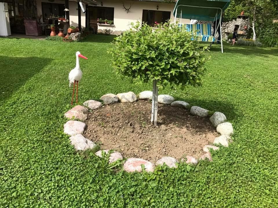 В просторния озеленен двор има лятно барбекю, басейн за разхлада през летния сезон и паркинг за автомобили.