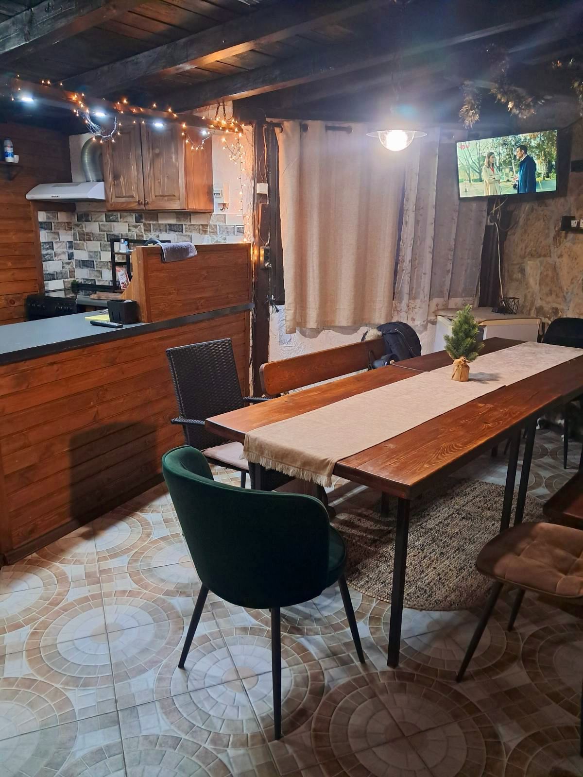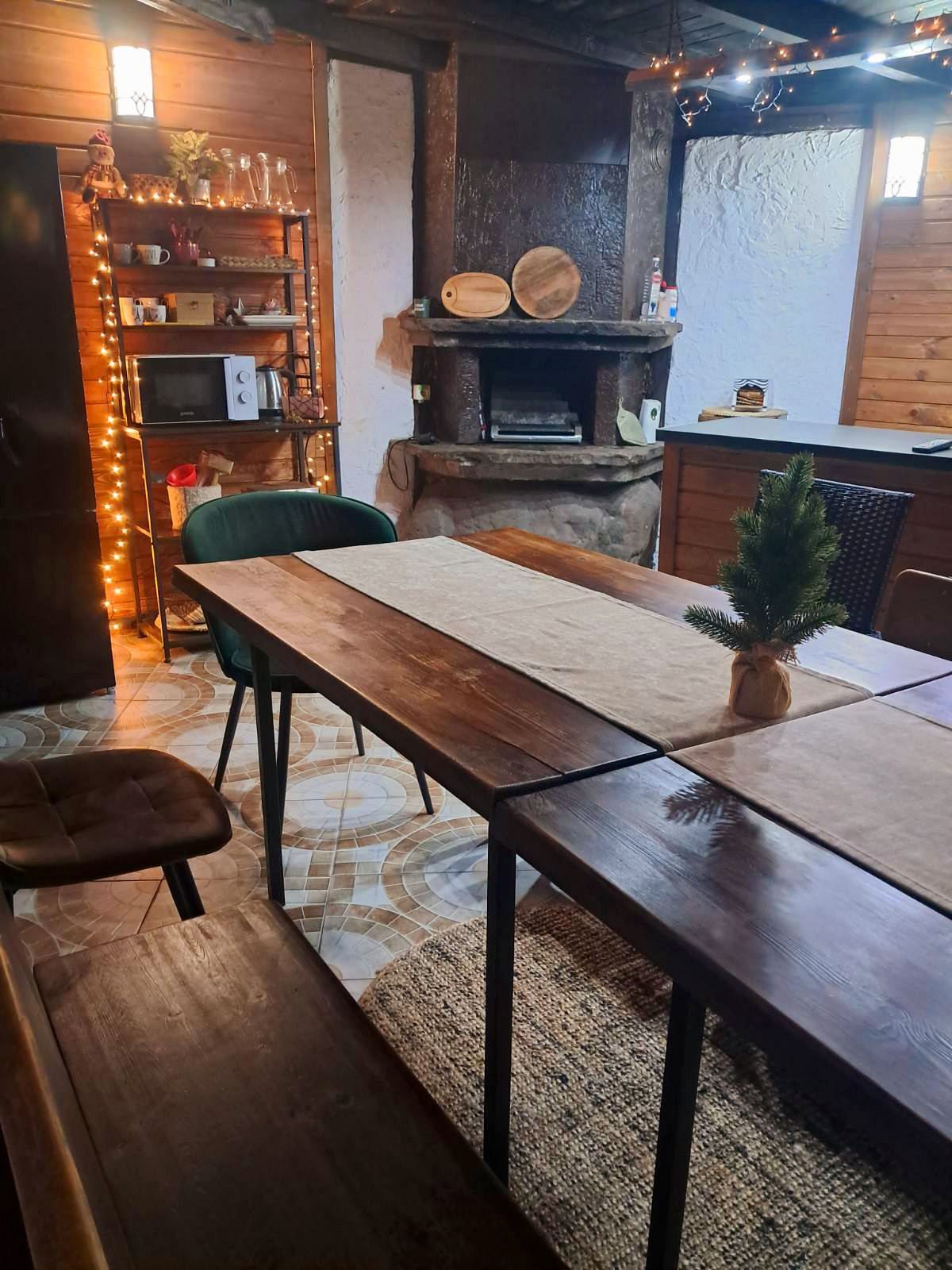 Къщата разполага с уютна механа с камина, оборудвана кухня, съоръжения за барбекю, слънчеви веранди с маси, кътове за релакс, кафе-бар и детска площадка. Осигурен е безплатен самостоятелен паркинг.