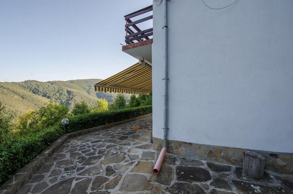 Дворът е с голяма тераса с барбекю и великолепна панорамна гледка. Има място за паркиране на два автомобила.