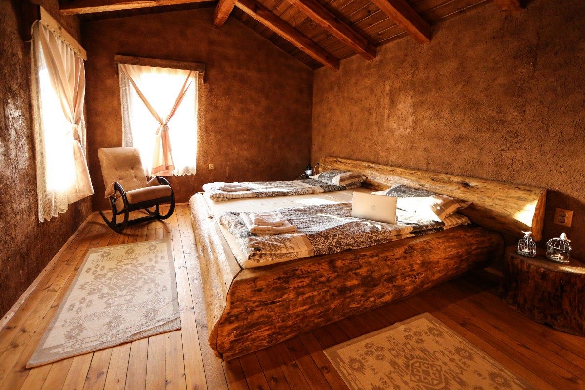 Дървената екокъщичка предлага 2+1 места за настаняване. Подходяща е за двама възрастни или семейство с деца.