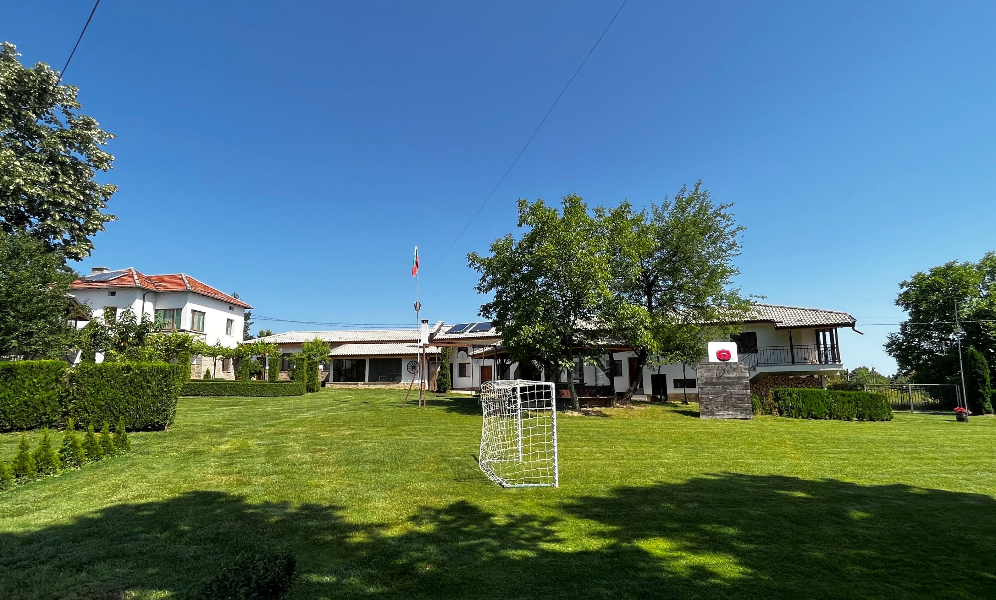Дворът е слънчев, просторен и озеленен, с детска люлка и в него децата Ви могат да се забавляват на воля.