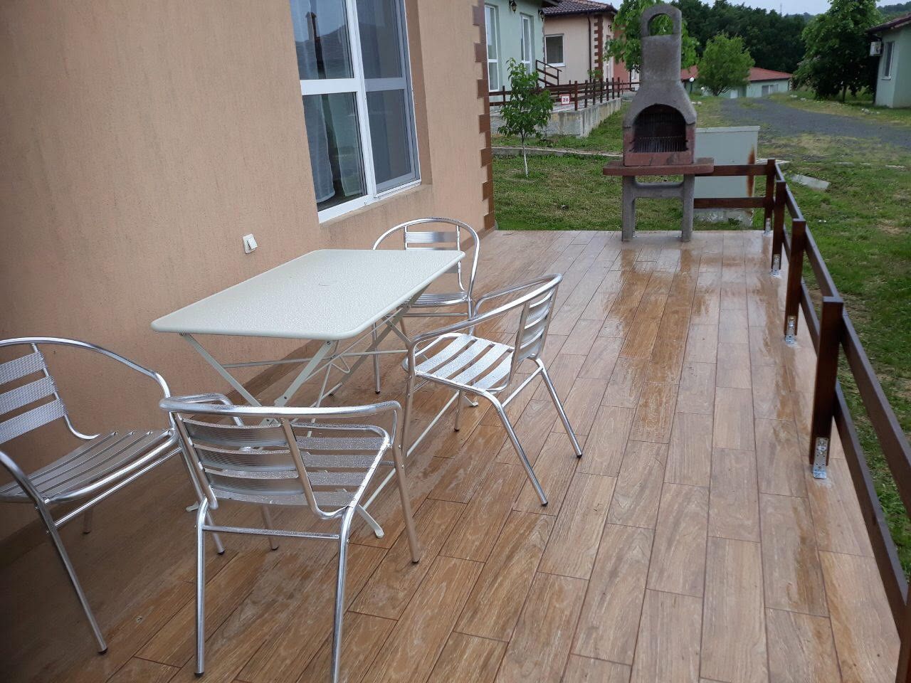 На разположение на гостите е просторна дневна с мека мебел (ъглов диван), оборудван кухненски бокс, трапезария с маса за 8 човека и слънчева веранда с барбекю, маса и 4 стола.