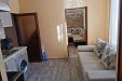 Етаж 2 (до 6+2 места): На разположение са: всекидневна с мека мебел и голяма холна маса за 8 човека; оборудвана кухня с мивка, хладилник, микровълнова, тостер, посуда и прибори, печка - изнесена на терасата поради липса на аспирация; без пералня; 2 тройни стаи; 1 санитарен възел и широка веранда.