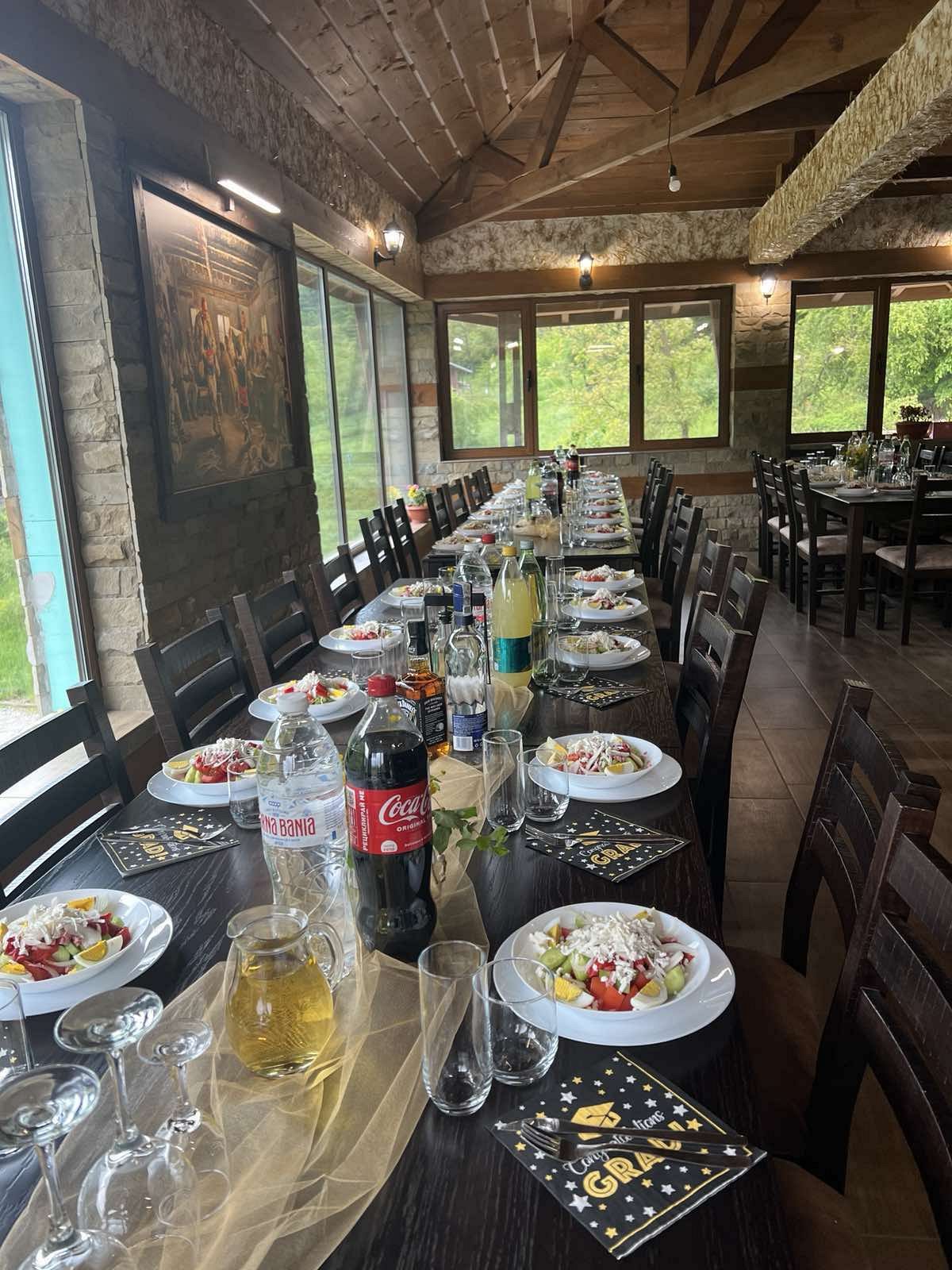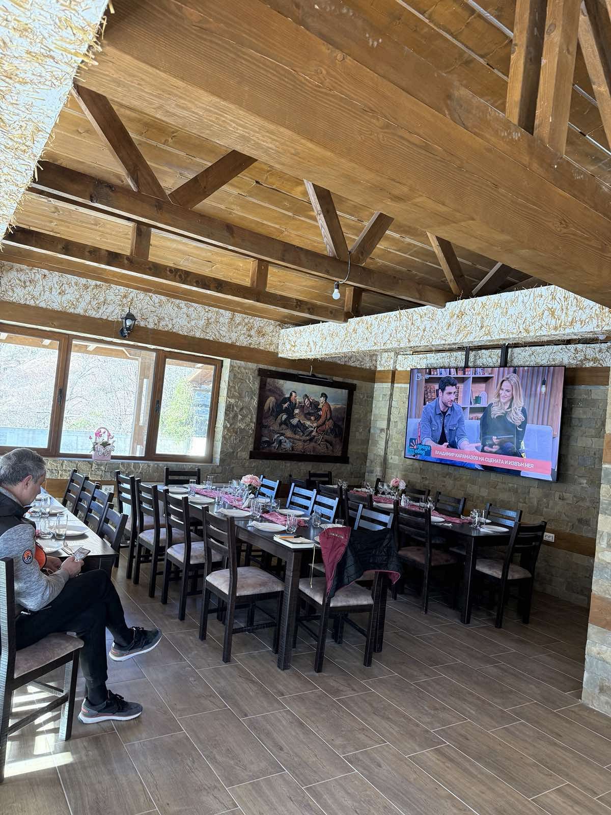 Къщата предлага голяма механа с камина, широк плазмен екран и оборудвана кухня. Механата е с капацитет 100 места и може да се наема за организиране на семейни тържества и фирмени мероприятия.